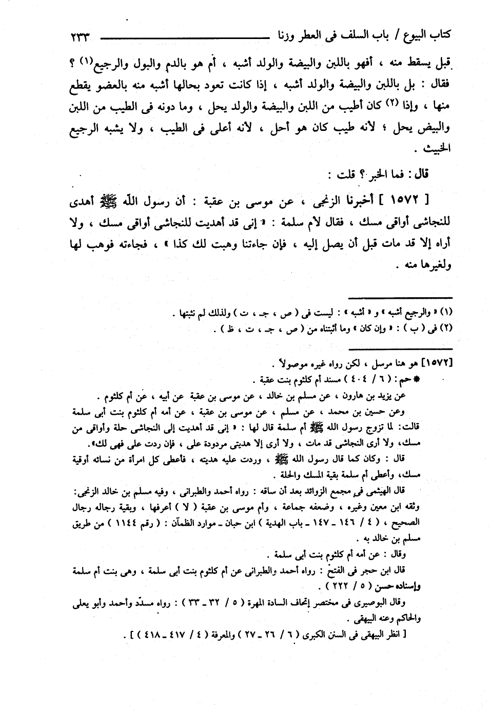 قال : فَمَا الْخَبَرُ ؟ قُلْت ( أَخْبَرَنَا ) الزَّنْجِيُّ عَنْ مُوسَى بْنِ عُقْبَةَ { أَنَّ رَسُولَ اللَّهِ - صلى الله عليه وسلم - أَهْدَى لِلنَّجَاشِيِّ أَوَاقِيَ مِسْكٍ فَقَالَ لِأُمِّ سَلَمَةَ إنِّي قَدْ أَهْدَيْت لِلنَّجَاشِيِّ أَوَاقِيَ مِسْكٍ , وَلاَ أَرَاهُ إلَّا قَدْ مَاتَ قَبْلَ أَنْ يَصِلَ إلَيْهِ فَإِنْ جَاءَتْنَا وَهَبْت لَك كَذَا فَجَاءَتْهُ فَوَهَبَ لَهَا وَلِغَيْرِهَا مِنْهُ }.@