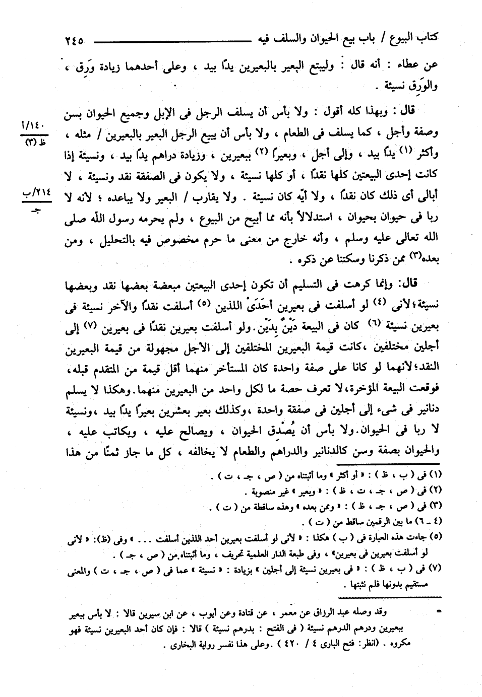 عَنْ عَطَاءٍ أَنَّهُ قَالَ وَلْيَبْتَعْ الْبَعِيرَ بِالْبَعِيرَيْنِ يَدًا بِيَدٍ وَعَلَى أَحَدِهِمَا زِيَادَةُ وَرِقٍ وَالْوَرِقُ نَسِيئَةٌ قَالَ وَبِهَذَا كُلِّهِ أَقُولُ , وَلاَ بَأْسَ أَنْ يُسَلِّفَ الرَّجُلُ فِي الْإِبِلِ وَجَمِيعُ الْحَيَوَانِ بِسِنٍّ وَصِفَةٍ وَأَجَلٍ كَمَا يُسَلِّفُ فِي الطَّعَامِ , وَلاَ بَأْسَ أَنْ يَبِيعَ الرَّجُلُ الْبَعِيرَ بِالْبَعِيرَيْنِ مِثْلَهُ أَوْ أَكْثَرَ يَدًا بِيَدٍ وَإِلَى أَجَلٍ وَبَعِيرًا بِبَعِيرَيْنِ وَزِيَادَةُ دَرَاهِمَ يَدًا بِيَدٍ وَنَسِيئَةً إذَا كَانَتْ إحْدَى الْبَيْعَتَيْنِ كُلُّهَا نَقْدًا أَوْ كُلُّهَا نَسِيئَةً . وَلاَ يَكُونُ فِي الصَّفْقَةِ نَقْدٌ وَنَسِيئَةٌ لاَ أُبَالِي أَيَّ ذَلِكَ كَانَ نَقْدًا , وَلاَ أَنَّهُ كَانَ نَسِيئَةً , وَلاَ يُقَارِبُ الْبَعِيرَ , وَلاَ يُبَاعِدُهُ ; لِأَنَّهُ رِبَا فِي حَيَوَانٍ بِحَيَوَانٍ اسْتِدْلاَلاً بِأَنَّهُ مِمَّا أُبِيحَ مِنْ الْبُيُوعِ وَلَمْ يُحَرِّمْهُ رَسُولُ اللَّهِ - صلى الله عليه وسلم - وَأَنَّهُ خَارِجٌ مِنْ مَعْنَى مَا حُرِّمَ مَخْصُوصٌ فِيهِ بِالتَّحْلِيلِ وَمَنْ بَعْدَهُ مِمَّنْ ذَكَرْنَا وَسَكَتْنَا عَنْ ذِكْرِهِ.