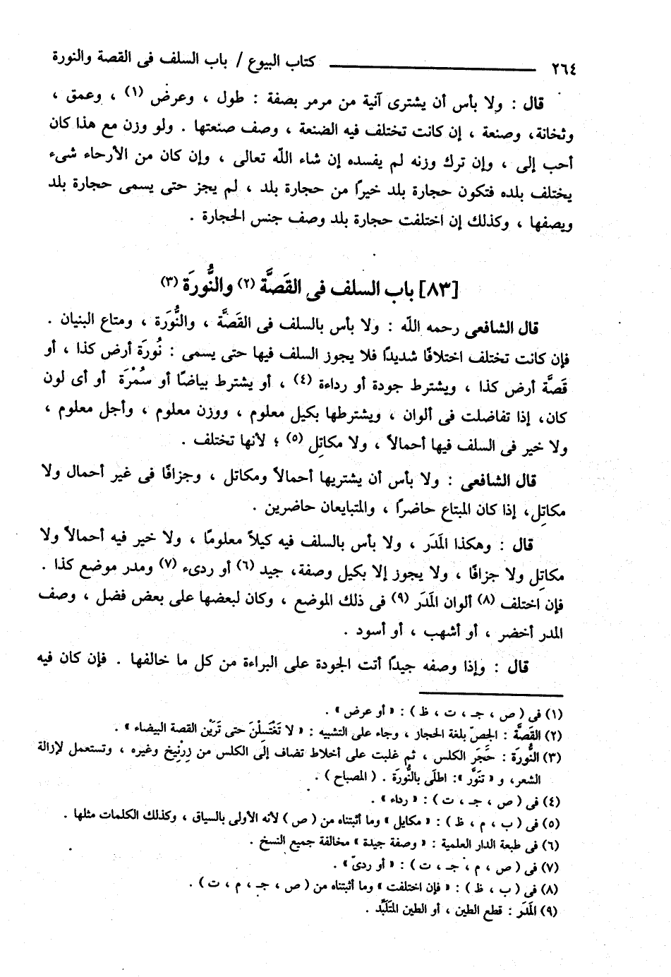 قَالَ الشَّافِعِيُّ : رحمه الله : وَلاَ بَأْسَ بِالسَّلَفِ فِي الْقَصَّةِ وَالنُّورَةِ وَمَتَاعِ الْبُنْيَانِ فَإِنْ كَانَتْ تَخْتَلِفُ اخْتِلاَفًا شَدِيدًا فَلاَ يَجُوزُ السَّلَفُ فِيهَا حَتَّى يُسَمَّى نُورَةَ أَرْضِ كَذَا أَوْ قَصَّةَ أَرْضِ كَذَا وَيَشْتَرِطُ جَوْدَةً أَوْ رَدَاءَةً أَوْ يَشْتَرِطُ بَيَاضًا أَوْ سُمْرَةً أَوْ أَيَّ لَوْنٍ كَانَ إذَا تَفَاضَلَتْ فِي أَلْوَانٍ وَيَشْتَرِطُهَا بِكَيْلٍ مَعْلُومٍ وَوَزْنٍ مَعْلُومٍ وَأَجَلٍ مَعْلُومٍ , وَلاَ خَيْرَ فِي السَّلَفِ فِيهَا أَحْمَالاً , وَلاَ مَكَايِل ; لِأَنَّهَا تَخْتَلِفُ