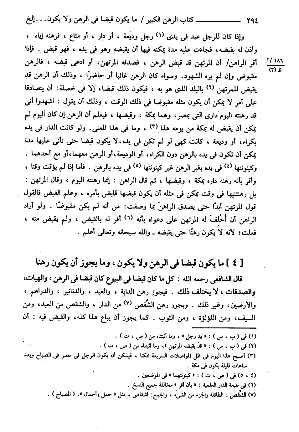 مَا يَكُونُ قَبْضًا فِي الرَّهْنِ , وَلاَ يَكُونُ , , وَمَا يَجُوزُ أَنْ يَكُونَ رَهْنًا .