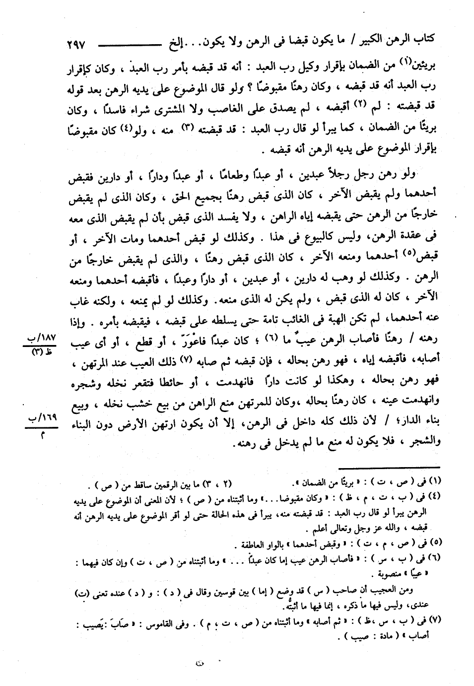 بَرِيئَيْنِ مِنْ الضَّمَانِ بِإِقْرَارِ وَكِيلِ رَبِّ الْعَبْدِ أَنَّهُ قَدْ قَبَضَهُ بِأَمْرِ رَبِّ الْعَبْدِ , وَكَانَ كَإِقْرَارِ رَبِّ الْعَبْدِ أَنَّهُ قَدْ قَبَضَهُ , وَكَانَ رَهْنًا مَقْبُوضًا ؟ . وَلَوْ قَالَ الْمَوْضُوعُ عَلَى يَدَيْهِ الرَّهْنُ بَعْدَ قَوْلِهِ قَدْ قَبَضْته : لَمْ أَقْبِضْهُ لَمْ يُصَدَّقْ عَلَى الْغَاصِبِ , وَلاَ الْمُشْتَرِي شِرَاءً فَاسِدًا , وَكَانَ بَرِيئًا مِنْ الضَّمَانِ كَمَا يَبْرَأُ لَوْ قَالَ رَبُّ الْعَبْدِ : قَدْ قَبَضْته مِنْهُ , وَكَانَ مَقْبُوضًا بِإِقْرَارِ الْمَوْضُوعِ عَلَى يَدَيْهِ الرَّهْنُ أَنَّهُ قَبَضَهُ . وَلَوْ رَهَنَ رَجُلٌ رَجُلاً عَبْدَيْنِ أَوْ عَبْدًا وَطَعَامًا أَوْ عَبْدًا وَدَارًا أَوْ دَارَيْنِ فَقَبَضَ أَحَدُهُمَا , وَلَمْ يَقْبِضْ الْآخَرُ كَانَ الَّذِي قَبَضَ رَهْنًا بِجَمِيعِ الْحَقِّ , وَكَانَ الَّذِي لَمْ يُقْبَضْ خَارِجًا مِنْ الرَّهْنِ حَتَّى يُقَبِّضَهُ إيَّاهُ الرَّاهِنُ , وَلاَ يَفْسُدُ الَّذِي قَبَضَ بِأَنْ لَمْ يَقْبِضْ الَّذِي مَعَهُ فِي عُقْدَةِ الرَّهْنِ , وَلَيْسَ كَالْبُيُوعِ فِي هَذَا . وَكَذَلِكَ لَوْ قَبَضَ أَحَدُهُمَا , وَمَاتَ الْآخَرُ أَوْ قَبَضَ أَحَدُهُمَا , وَمَنَعَهُ الْآخَرُ كَانَ الَّذِي قَبَضَ رَهْنًا وَاَلَّذِي لَمْ يَقْبِضْ خَارِجًا مِنْ الرَّهْنِ , وَكَذَلِكَ لَوْ وَهَبَ لَهُ دَارَيْنِ أَوْ عَبْدَيْنِ أَوْ دَارًا وَعَبْدًا فَأَقْبَضَهُ أَحَدَهُمَا , وَمَنَعَهُ الْآخَرَ كَانَ لَهُ الَّذِي قَبَضَ , وَلَمْ يَكُنْ لَهُ الَّذِي مَنَعَهُ , وَكَذَلِكَ لَوْ لَمْ يَمْنَعْهُ , وَلَكِنَّهُ غَابَ عَنْهُ أَحَدُهُمَا لَمْ تَكُنْ الْهِبَةُ فِي الْغَائِبِ تَامَّةً حَتَّى يُسَلِّطَهُ عَلَى قَبْضِهِ فَيَقْبِضُهُ بِأَمْرِهِ . وَإِذَا رَهَنَهُ رَهْنًا فَأَصَابَ الرَّهْنَ عَيْبٌ إمَّا كَانَ عَبْدًا فَاعْوَرَّ أَوْ قُطِعَ أَوْ أَيُّ عَيْبٍ أَصَابَهُ فَأَقْبَضَهُ إيَّاهُ فَهُوَ رَهْنٌ بِحَالِهِ فَإِنْ قَبَضَهُ ثُمَّ أَصَابَهُ ذَلِكَ الْعَيْبُ عِنْدَ الْمُرْتَهِنِ فَهُوَ رَهْنٌ بِحَالِهِ , وَهَكَذَا لَوْ كَانَتْ دَارًا فَانْهَدَمَتْ أَوْ حَائِطًا فَتَقَعَّرَ نَخْلُهُ وَشَجَرُهُ وَانْهَدَمَتْ عَيْنُهُ كَانَ رَهْنًا بِحَالِهِ , وَكَانَ لِلْمُرْتَهِنِ مَنْعُ الرَّاهِنِ مِنْ بَيْعِ خَشَبِ نَخْلِهِ وَبَيْعِ بِنَاءِ الدَّارِ ; لِأَنَّ ذَلِكَ كُلَّهُ دَاخِلٌ فِي الرَّهْنِ . إلَّا أَنْ يَكُونَ ارْتَهَنَ الْأَرْضَ دُونَ الْبِنَاءِ وَالشَّجَرِ فَلاَ يَكُونُ لَهُ مَنْعُ مَا لَمْ يَدْخُلْ فِي رَهْنِهِ ,@