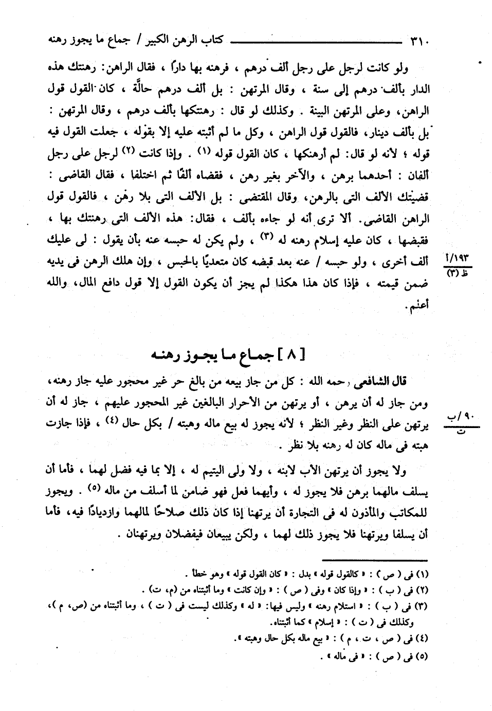 جِمَاعُ مَا يَجُوزُ رَهْنُهُ . ( قَالَ : الشَّافِعِيُّ ) : رحمه الله كُلُّ مَنْ جَازَ بَيْعُهُ مِنْ بَالِغٍ حُرٍّ غَيْرِ مَحْجُورٍ عَلَيْهِ جَازَ رَهْنُهُ , وَمَنْ جَازَ لَهُ أَنْ يَرْهَنَ أَوْ يَرْتَهِنَ مِنْ الْأَحْرَارِ الْبَالِغِينَ غَيْرِ الْمَحْجُورِ عَلَيْهِمْ جَازَ لَهُ أَنْ يَرْتَهِنَ عَلَى النَّظَرِ وَغَيْرِ النَّظَرِ ; لِأَنَّهُ يَجُوزُ لَهُ بَيْعُ مَالِهِ , وَهِبَتُهُ بِكُلِّ حَالٍّ فَإِذَا جَازَتْ هِبَتُهُ فِي مَالِهِ كَانَ لَهُ رَهْنُهُ بِلاَ نَظَرٍ , وَلاَ يَجُوزُ أَنْ يَرْتَهِنَ الْأَبُ لِابْنِهِ , وَلاَ وَلِيُّ الْيَتِيمِ لَهُ إلَّا بِمَا فِيهِ فَضْلٌ لَهُمَا فَأَمَّا أَنْ يُسَلِّفَ مَالَهُمَا بِرَهْنٍ فَلاَ يَجُوزُ لَهُ وَأَيُّهُمَا فَعَلَ فَهُوَ ضَامِنٌ لِمَا أَسْلَفَ مِنْ مَالِهِ وَيَجُوزُ لِلْمُكَاتَبِ وَالْمَأْذُونِ لَهُ فِي التِّجَارَةِ أَنْ يَرْتَهِنَا إذَا كَانَ ذَلِكَ صَلاَحًا لِمَالِهِمَا وَازْدِيَادًا فِيهِ فَأَمَّا أَنْ يُسَلِّفَا وَيَرْتَهِنَا فَلاَ يَجُوزُ ذَلِكَ لَهُمَا , وَلَكِنْ يَبِيعَانِ فَيَفْضُلاَنِ وَيَرْتَهِنَانِ ,@