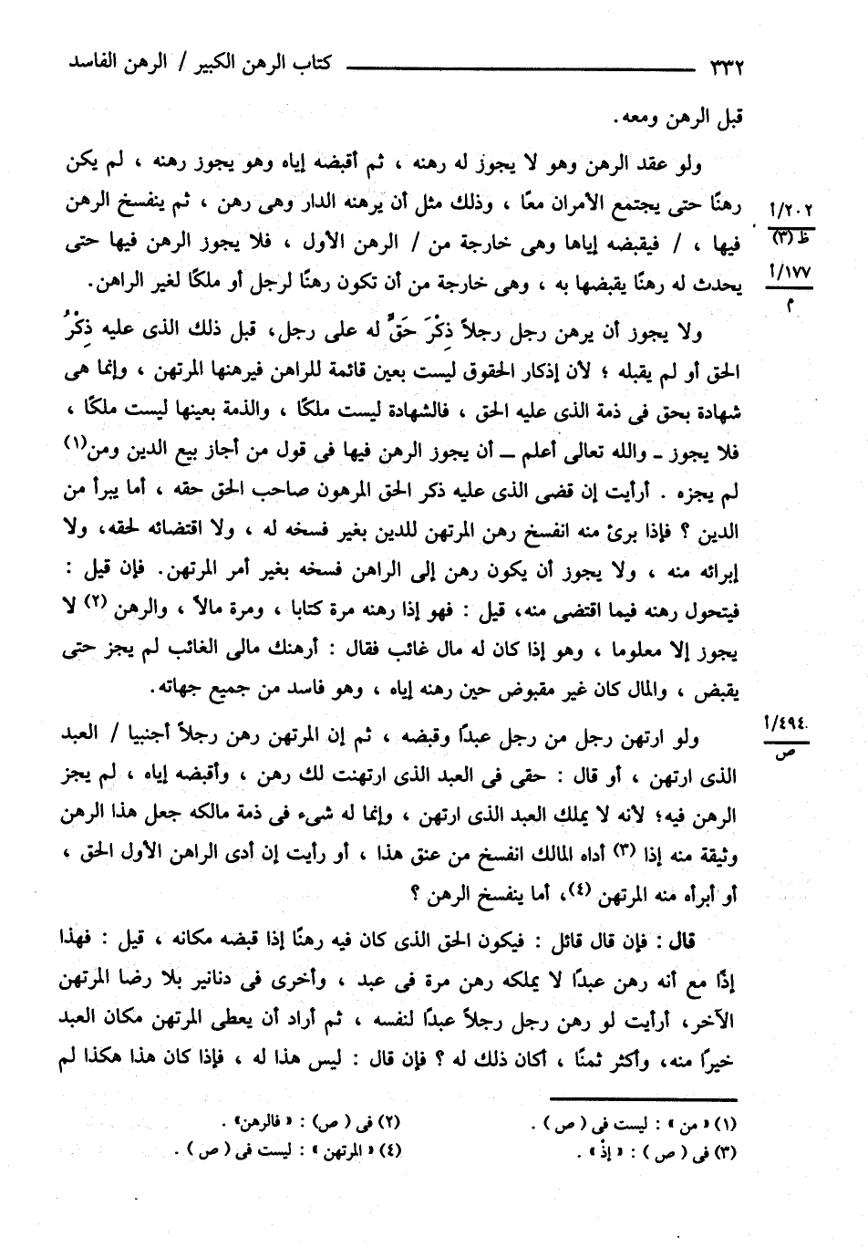قال : فَإِنْ قَالَ قَائِلٌ فَيَكُونُ الْحَقُّ الَّذِي كَانَ فِيهِ رَهْنًا إذَا قَبَضَهُ مَكَانَهُ , قِيلَ فَهَذَا إذًا مَعَ أَنَّهُ رَهَنَ عَبْدًا لاَ يَمْلِكُهُ رَهَنَ مَرَّةً فِي عَبْدٍ وَأُخْرَى فِي دَنَانِيرَ بِلاَ رِضَا الْمُرْتَهِنِ الْآخَرِ . أَرَأَيْت لَوْ رَهَنَ رَجُلٌ رَجُلاً عَبْدًا لِنَفْسِهِ ثُمَّ أَرَادَ أَنْ يُعْطِيَ الْمُرْتَهِنَ مَكَانَ الْعَبْدِ خَيْرًا مِنْهُ وَأَكْثَرَ ثَمَنًا أَكَانَ ذَلِكَ لَهُ ؟ فَإِنْ قَالَ : لَيْسَ هَذَا لَهُ فَإِذَا كَانَ هَذَا هَكَذَا لَمْ@