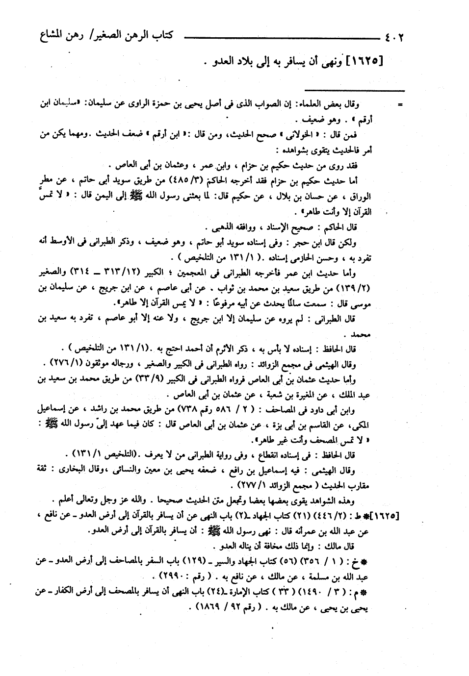وَنَهَى أَنْ يُسَافِرَ بِهِ إلَى بِلاَدِ الْعَدُوِّ .@