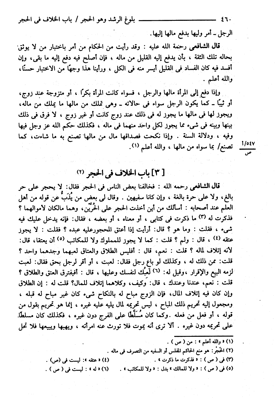 قَالَ الشَّافِعِيُّ : رحمه الله تعالى فَخَالَفَنَا بَعْضُ النَّاسِ فِي الْحَجْرِ فَقَالَ لاَ يُحْجَرُ عَلَى حُرٍّ بَالِغٍ , وَلاَ عَلَى حُرَّةٍ بَالِغَةٍ وَإِنْ كَانَا سَفِيهَيْنِ وَقَالَ لِي بَعْضُ مَنْ يَذُبُّ عَنْ قَوْلِهِ مِنْ أَهْلِ الْعِلْمِ عِنْدَ أَصْحَابِهِ أَسْأَلُك مِنْ أَيْنَ أَخَذْت الْحَجْرَ عَلَى الْحُرَّيْنِ وَهُمَا مَالِكَانِ لِأَمْوَالِهِمَا ؟ فَذَكَرْتُ لَهُ مَا ذَكَرْت فِي كِتَابِي أَوْ مَعْنَاهُ أَوْ بَعْضَهُ فَقَالَ فَإِنَّهُ يَدْخُلُ عَلَيْك فِيهِ شَيْءٌ فَقُلْت وَمَا هُوَ ؟ قَالَ أَرَأَيْت إذَا أَعْتَقَ الْمَحْجُورُ عَلَيْهِ عَبْدَهُ ؟ . فَقُلْت : لاَ يَجُوزُ عِتْقُهُ . قَالَ : وَلِمَ ؟ قُلْت : كَمَا لاَ يَجُوزُ لِلْمَمْلُوكِ , وَلاَ لِلْمُكَاتَبِ أَنْ يُعْتِقَا قَالَ ; لِأَنَّهُ إتْلاَفٌ لِمَالِهِ ؟ . قُلْت : نَعَمْ قَالَ أَفَلَيْسَ الطَّلاَقُ وَالْعَتَاقُ لَعِبُهُمَا وَجَدُّهُمَا وَاحِدٌ ؟ قُلْت مِمَّنْ ذَلِكَ لَهُ وَكَذَلِكَ لَوْ بَاعَ رَجُلٌ فَقَالَتْ لَعِبْت أَوْ أَقَرَّ لِرَجُلٍ بِحَقٍّ فَقَالَ لَعِبْت لَزِمَهُ الْبَيْعُ وَالْإِقْرَارُ وَقِيلَ لَهُ لَعِبُك لِنَفْسِك وَعَلَيْهَا قَالَ أَفَيَفْتَرِقُ الْعِتْقُ وَالطَّلاَقُ ؟ . قُلْت : نَعَمْ عِنْدَنَا وَعِنْدَك قَالَ وَكَيْفَ وَكِلاَهُمَا إتْلاَفٌ لِلْمَالِ ؟ قُلْت لَهُ إنَّ الطَّلاَقَ وَإِنْ كَانَ فِيهِ إتْلاَفُ الْمَالِ فَإِنَّ الزَّوْجَ مُبَاحٌ لَهُ بِالنِّكَاحِ شَيْءٌ كَانَ غَيْرَ مُبَاحٍ لَهُ قَبْلَهُ وَمَجْعُولٌ إلَيْهِ تَحْرِيمُ ذَلِكَ الْمُبَاحِ لَيْسَ تَحْرِيمُهُ لِمَالٍ يَلِيهِ عَلَيْهِ غَيْرُهُ إنَّمَا هُوَ تَحْرِيمٌ بِقَوْلٍ مِنْ قَوْلِهِ أَوْ فِعْلٍ مِنْ فِعْلِهِ وَكَمَا كَانَ مُسَلَّطًا عَلَى الْفَرْجِ دُونَ غَيْرِهِ فَكَذَلِكَ كَانَ مُسَلَّطًا عَلَى تَحْرِيمِهِ دُونَ غَيْرِهِ أَلاَ تَرَى أَنَّهُ يَمُوتُ فَلاَ تُوَرَّثُ عَنْهُ امْرَأَتُهُ وَيَهَبُهَا وَيَبِيعُهَا فَلاَ تَحِلُّ@