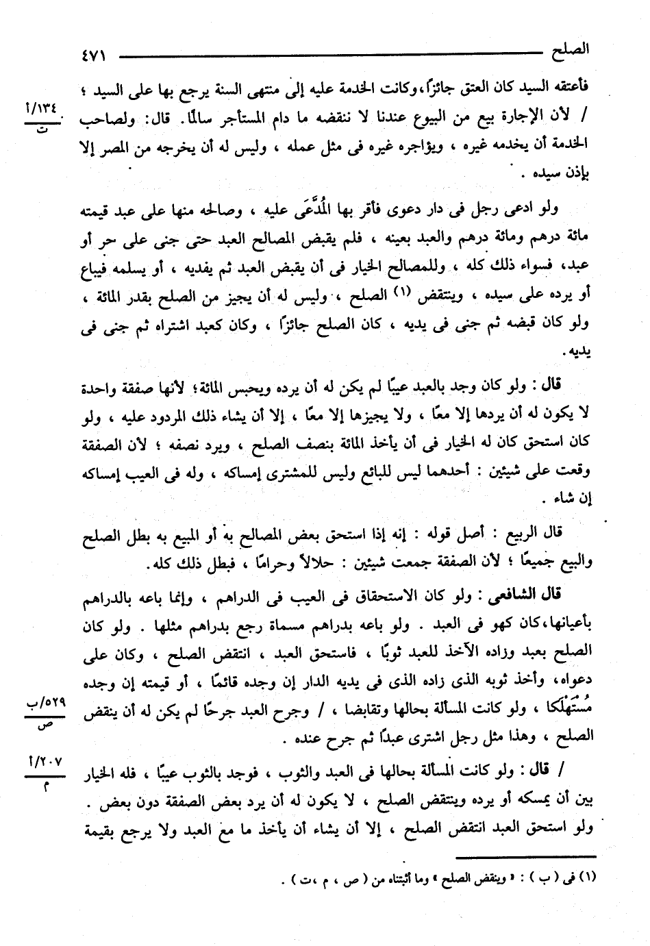 قَالَ الشَّافِعِيُّ : وَلَوْ كَانَ الِاسْتِحْقَاقُ فِي الْعَيْبِ فِي الدَّرَاهِمِ وَإِنَّمَا بَاعَهُ بِالدَّرَاهِمِ بِأَعْيَانِهَا كَانَ كَهُوَ فِي الْعَبْدِ , وَلَوْ بَاعَهُ بِدَرَاهِمَ مُسَمَّاةٍ رَجَعَ بِدَرَاهِمَ مِثْلِهَا , وَلَوْ كَانَ الصُّلْحُ بِعَبْدٍ وَزَادَهُ الْآخِذُ لِلْعَبْدِ ثَوْبًا فَاسْتَحَقَّ الْعَبْدُ انْتَقَضَ الصُّلْحُ , وَكَانَ عَلَى دَعْوَاهُ , وَأَخَذَ ثَوْبَهُ الَّذِي زَادَهُ الَّذِي فِي يَدَيْهِ الدَّارُ إنْ وَجَدَهُ قَائِمًا أَوْ قِيمَتَهُ إنْ وُجِدَ مُسْتَهْلَكًا , وَلَوْ كَانَتْ الْمَسْأَلَةُ بِحَالِهَا وَتَقَابَضَا وَجُرِحَ الْعَبْدُ جُرْحًا لَمْ يَكُنْ لَهُ أَنْ يَنْقُضَ الصُّلْحَ وَهَذَا مِثْلُ رَجُلٍ اشْتَرَى عَبْدًا ثُمَّ جُرِحَ عِنْدَهُ . قَالَ : وَلَوْ كَانَتْ الْمَسْأَلَةُ بِحَالِهَا فِي الْعَبْدِ وَالثَّوْبِ فَوَجَدَ بِالثَّوْبِ عَيْبًا فَلَهُ الْخِيَارُ بَيْنَ أَنْ يُمْسِكَهُ أَوْ يَرُدَّهُ وَيُنْتَقَضُ الصُّلْحُ لاَ يَكُونُ لَهُ أَنْ يَرُدَّ بَعْضَ الصَّفْقَةِ دُونَ بَعْضٍ , وَلَوْ اسْتَحَقَّ الْعَبْدَ انْتَقَضَ الصُّلْحُ إلَّا أَنْ يَشَاءَ أَنْ يَأْخُذَ مَا مَعَ الْعَبْدِ , وَلاَ يَرْجِعُ بِقِيمَةِ@