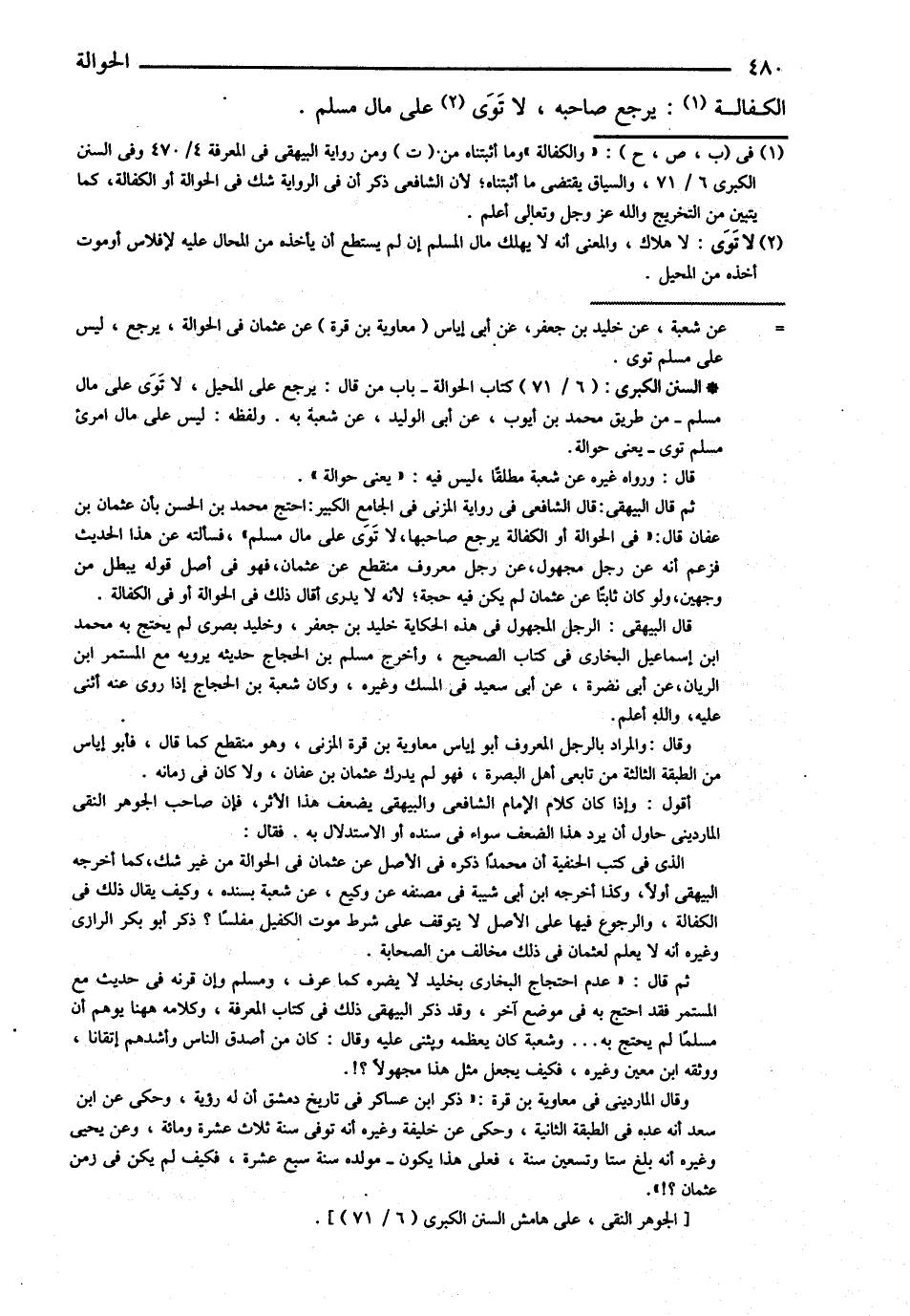 اوَالْكَفَالَةِ يَرْجِعُ صَاحِبُهُ لاَ تَوَى عَلَى مَالِ مُسْلِمٍ ,@