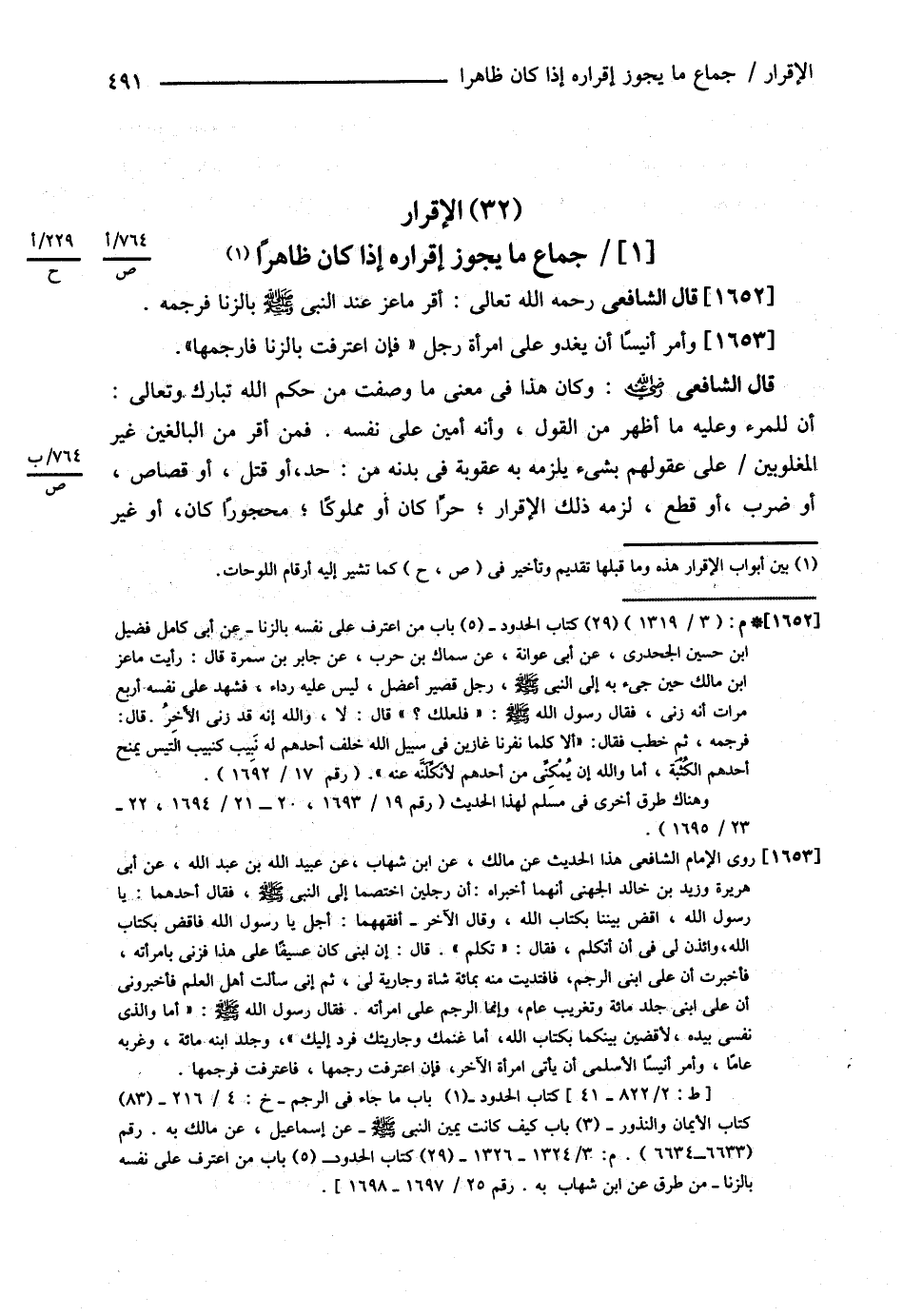 قَالَ الشَّافِعِيُّ : رحمه الله تعالى { أَقَرَّ مَاعِزٌ عِنْدَ النَّبِيِّ - صلى الله عليه وسلم - بِالزِّنَا فَرَجَمَهُ } , { وَأَمَرَ أُنَيْسًا أَنْ يَغْدُوَ عَلَى امْرَأَةِ رَجُلٍ فَإِنْ اعْتَرَفَتْ بِالزِّنَا فَارْجُمْهَا } .