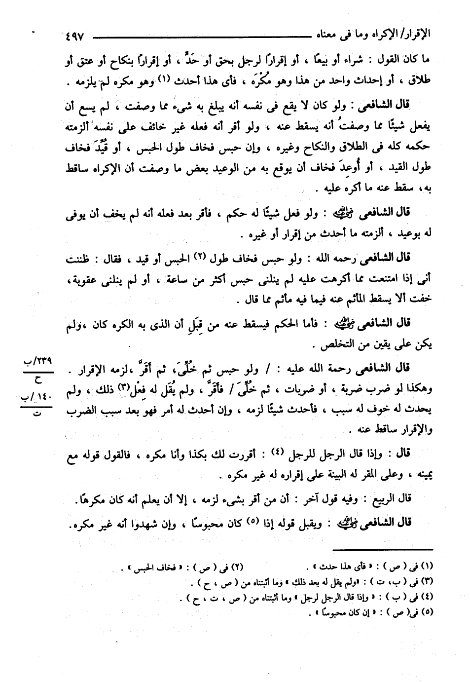 قَالَ الشَّافِعِيُّ : فَأَمَّا الْحُكْمُ فَيَسْقُطُ عَنْهُ مِنْ قِبَلِ أَنَّ الَّذِي بِهِ الْكُرْهُ كَانَ وَلَمْ يَكُنْ عَلَى يَقِينٍ مِنْ التَّخَلُّصِ .