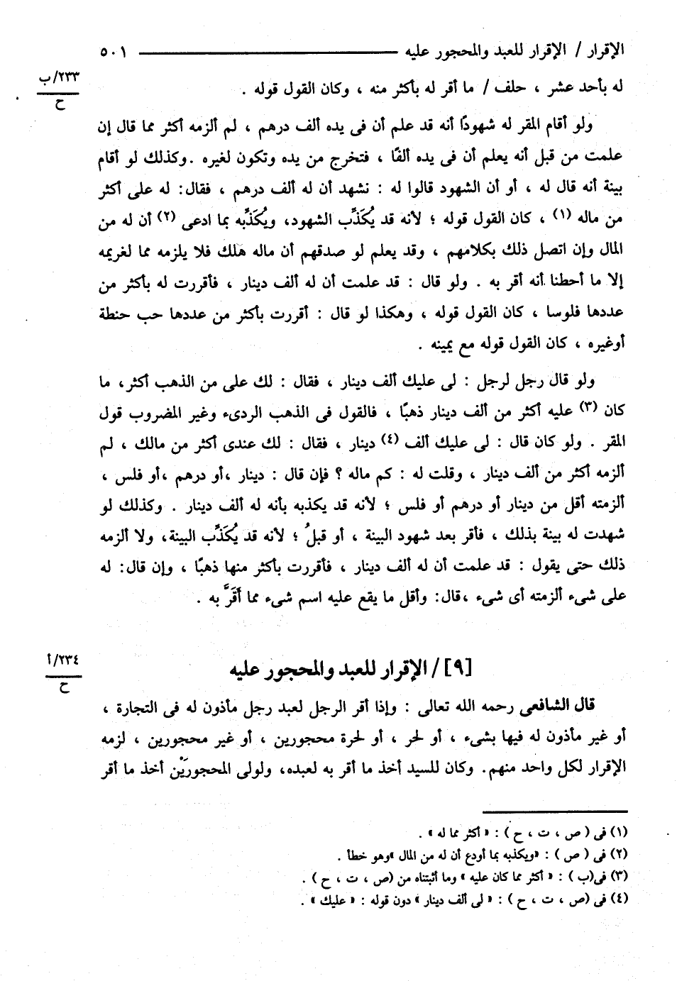 الْإِقْرَارُ لِلْعَبْدِ وَالْمَحْجُورِ عَلَيْهِ .