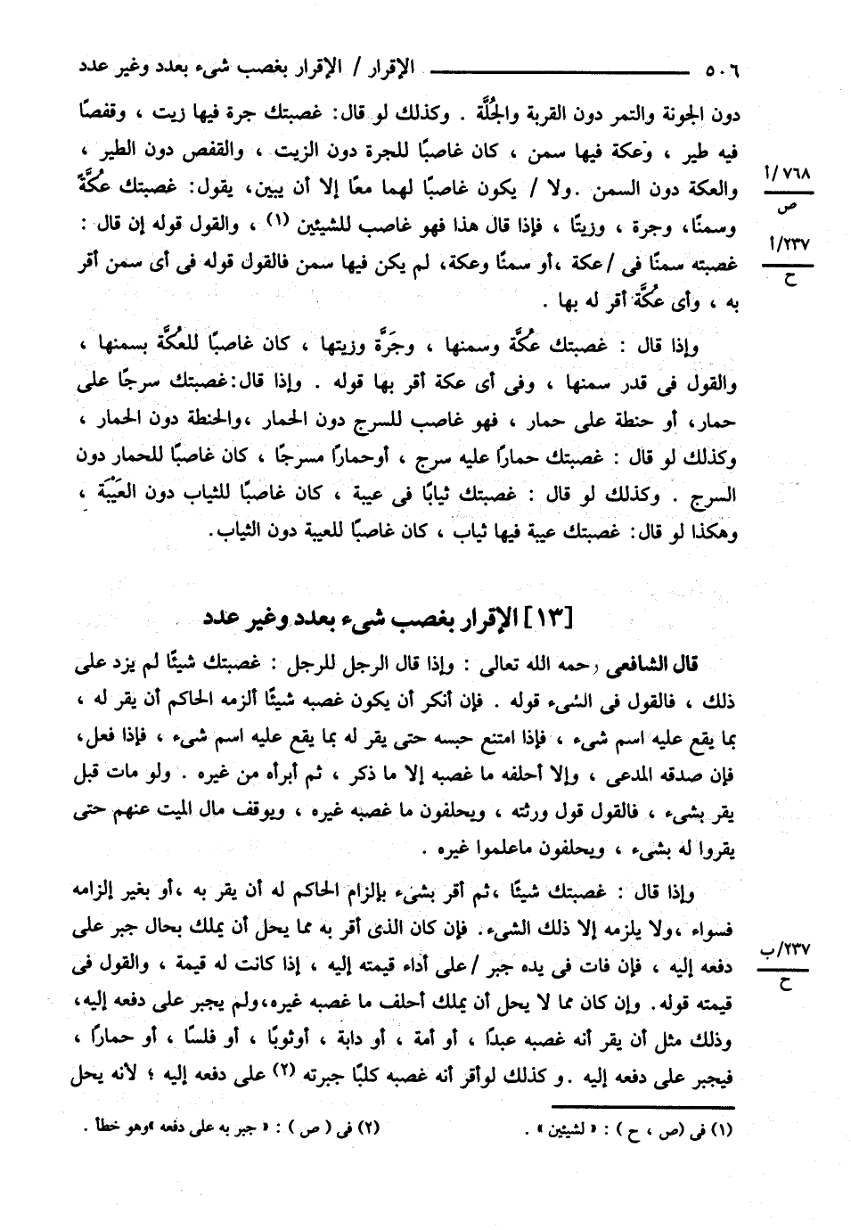 الْإِقْرَارُ بِغَصْبِ شَيْءٍ بِعَدَدٍ وَغَيْرِ عَدَدٍ .