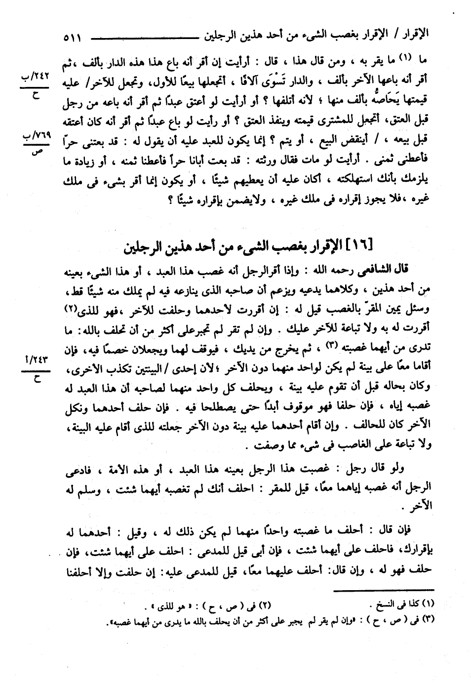 الْإِقْرَارُ بِغَصْبِ الشَّيْءِ مِنْ أَحَدِ هَذَيْنِ الرَّجُلَيْنِ .