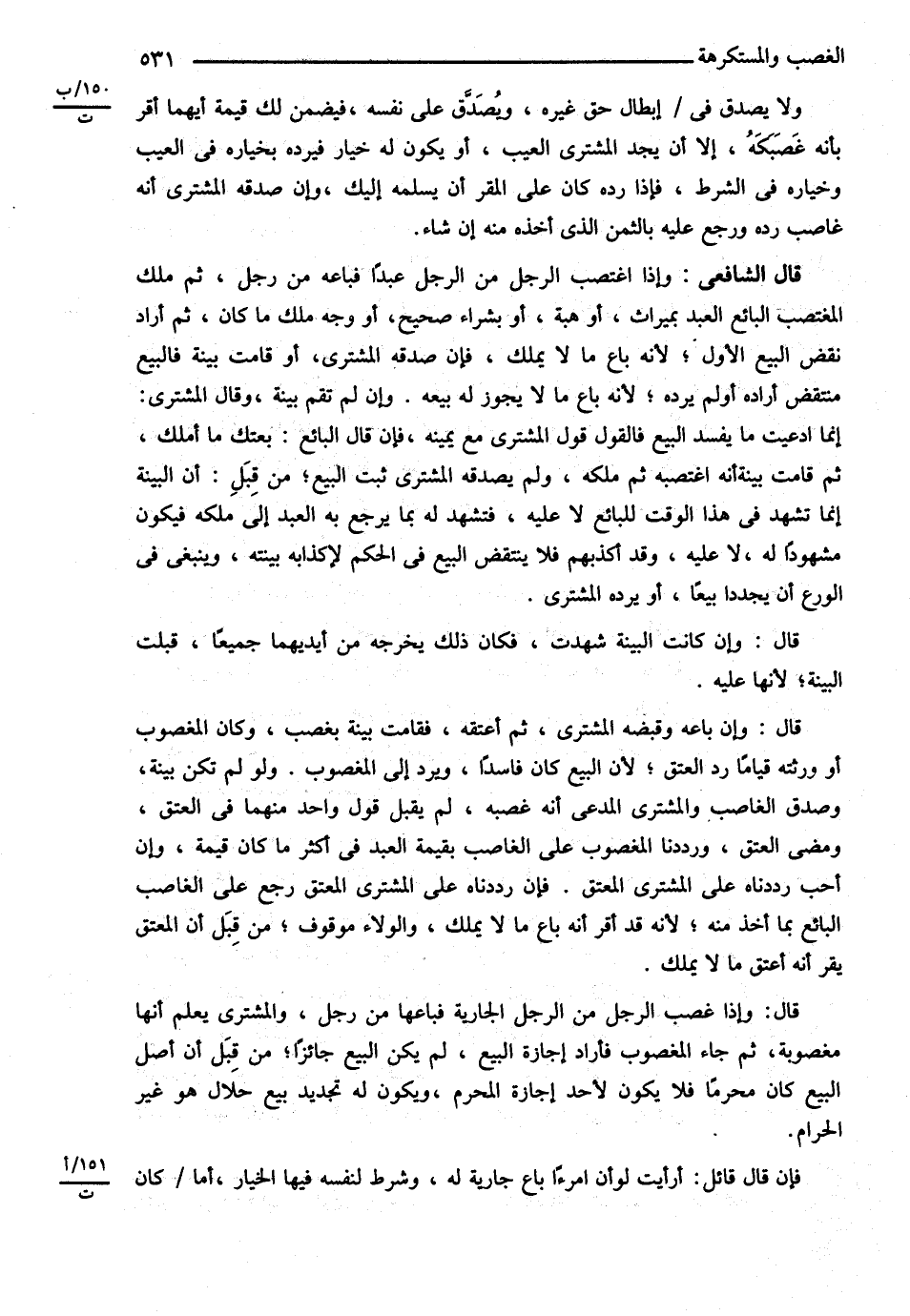 قَالَ الشَّافِعِيُّ : وَإِذَا اغْتَصَبَ الرَّجُلُ مِنْ الرَّجُلِ عَبْدًا فَبَاعَهُ مِنْ رَجُلٍ ثُمَّ مَلَّكَ الْمُغْتَصِبُ الْبَائِعَ ذَلِكَ الْعَبْدَ بِمِيرَاثٍ أَوْ هِبَةٍ أَوْ بِشِرَاءٍ صَحِيحٍ أَوْ وَجْهِ مِلْكٍ مَا كَانَ ثُمَّ أَرَادَ نَقْضَ الْبَيْعِ الْأَوَّلِ ; لِأَنَّهُ بَاعَ مَا لاَ يَمْلِكُ فَإِنْ صَدَّقَهُ الْمُشْتَرِي أَوْ قَامَتْ بَيِّنَةٌ فَالْبَيْعُ مُنْتَقَضٌ أَرَادَهُ أَوْ لَمْ يُرِدْهُ ; لِأَنَّهُ بَاعَ مَا لاَ يَجُوزُ لَهُ بَيْعُهُ وَإِنْ لَمْ تَقُمْ بَيِّنَةٌ وَقَالَ الْمُشْتَرِي : إنَّمَا ادَّعَيْت مَا يُفْسِدُ الْبَيْعَ فَالْقَوْلُ قَوْلُ الْمُشْتَرِي مَعَ يَمِينِهِ . فَإِنْ قَالَ الْبَائِعُ : بِعْتُك مَا أَمْلِكُ ثُمَّ قَامَتْ بَيِّنَةٌ أَنَّهُ اغْتَصَبَهُ ثُمَّ مَلَكَهُ , وَلَمْ يُصَدِّقْهُ الْمُشْتَرِي ثَبَتَ الْبَيْعُ مِنْ قِبَلِ أَنَّ الْبَيِّنَةَ إنَّمَا تَشْهَدُ فِي هَذَا الْوَقْتِ لِلْبَائِعِ لاَ عَلَيْهِ فَتَشْهَدُ لَهُ بِمَا يَرْجِعُ بِهِ الْعَبْدُ إلَى مِلْكِهِ فَيَكُونُ مَشْهُودًا لَهُ لاَ عَلَيْهِ . وَقَدْ أُكَذِّبُهُمْ فَلاَ يُنْتَقَضُ الْبَيْعُ فِي الْحُكْمِ لِإِكْذَابِهِ بَيِّنَتَهُ , وَيَنْبَغِي فِي الْوَرَعِ أَنْ يُجَدِّدَا بَيْعًا أَوْ يَرُدَّهُ الْمُشْتَرِي . قَالَ : وَإِنْ كَانَتْ الْبَيِّنَةُ شَهِدَتْ فَكَانَ ذَلِكَ يُخْرِجُهُ مِنْ أَيْدِيهِمَا جَمِيعًا قُبِلَتْ الْبَيِّنَةُ ; لِأَنَّهَا عَلَيْهِ . قَالَ : وَإِنْ بَاعَهُ وَقَبَضَهُ الْمُشْتَرِي ثُمَّ أَعْتَقَهُ فَقَامَتْ بَيِّنَةٌ بِغَصْبٍ وَكَانَ الْمَغْصُوبُ أَوْ وَرَثَتُهُ قِيَامًا رُدَّ الْعِتْقُ ; لِأَنَّ الْبَيْعَ كَانَ فَاسِدًا وَيُرَدُّ إلَى الْمَغْصُوبِ , وَلَوْ لَمْ تَكُنْ بَيِّنَةٌ وَصَدَّقَ الْغَاصِبُ وَالْمُشْتَرِي الْمُدَّعِيَ أَنَّهُ غَصَبَهُ لَمْ يُقْبَلْ قَوْلُ وَاحِدٍ مِنْهُمَا فِي الْعِتْقِ وَمَضَى الْعِتْقُ وَرَدَدْنَا الْمَغْصُوبَ عَلَى الْغَاصِبِ بِقِيمَةِ الْعَبْدِ فِي أَكْثَرِ مَا كَانَ قِيمَةً وَإِنْ أَحَبَّ رَدَدْنَاهُ عَلَى الْمُشْتَرِي الْمُعْتِقِ فَإِنْ رَدَدْنَاهُ عَلَى الْمُشْتَرِي الْمُعْتِقِ رَجَعَ عَلَى الْغَاصِبِ الْبَائِعِ بِمَا أُخِذَ مِنْهُ ; لِأَنَّهُ قَدْ أَقَرَّ أَنَّهُ بَاعَ مَا لاَ يَمْلِكُ وَالْوَلاَءُ مَوْقُوفٌ مِنْ قِبَلِ أَنَّ الْمُعْتِقَ يُقِرُّ أَنَّهُ أَعْتَقَ مَا لاَ يَمْلِكُ .