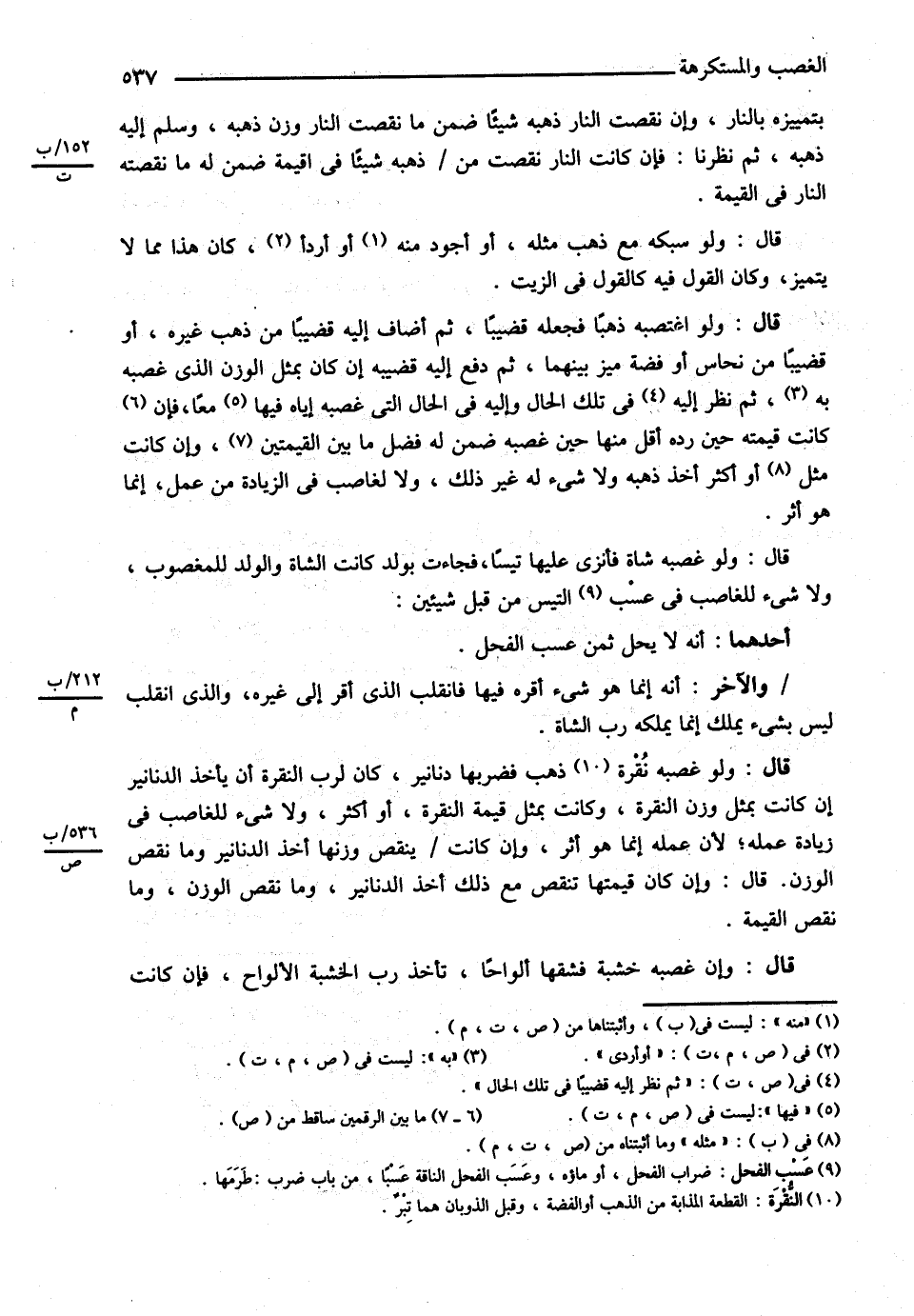 بِتَمْيِيزِهِ بِالنَّارِ وَإِنْ نَقَصَتْ النَّارُ ذَهَبَهُ شَيْئًا ضَمِنَ مَا نَقَصَتْ النَّارُ وَزْنَ ذَهَبِهِ وَسَلَّمَ إلَيْهِ ذَهَبَهُ ثُمَّ نَظَرْنَا فَإِنْ كَانَتْ النَّارُ نَقَصَتْ مِنْ ذَهَبِهِ شَيْئًا فِي الْقِيمَةِ ضَمِنَ لَهُ مَا نَقَصَتْهُ النَّارُ فِي الْقِيمَةِ . وَقَالَ : وَلَوْ سَبَكَهُ مَعَ ذَهَبٍ مِثْلِهِ أَوْ أَجْوَدَ أَوْ أَرْدَأَ كَانَ هَذَا مِمَّا لاَ يَتَمَيَّزُ وَكَانَ الْقَوْلُ فِيهِ كَالْقَوْلِ فِي الزَّيْتِ . قَالَ : وَلَوْ اغْتَصَبَهُ ذَهَبًا فَجَعَلَهُ قَضِيبًا ثُمَّ أَضَافَ إلَيْهِ قَضِيبًا مِنْ ذَهَبٍ غَيْرِهِ أَوْ قَضِيبًا مِنْ نُحَاسٍ أَوْ فِضَّةٍ مَيَّزَ بَيْنَهُمَا ثُمَّ دَفَعَ إلَيْهِ قَضِيبَهُ إنْ كَانَ بِمِثْلِ الْوَزْنِ الَّذِي غَصَبَهُ بِهِ ثُمَّ نَظَرَ إلَيْهِ فِي تِلْكَ الْحَالِ وَإِلَيْهِ فِي الْحَالِ الَّتِي غَصَبَهُ إيَّاهُ فِيهَا مَعًا فَإِنْ كَانَتْ قِيمَتُهُ حِينَ رَدَّهُ أَقَلَّ مِنْهَا حِينَ غَصَبَهُ ضَمِنَ لَهُ فَضْلَ مَا بَيْنَ الْقِيمَتَيْنِ , وَإِنْ كَانَتْ مِثْلَهُ أَوْ أَكْثَرَ أَخَذَ ذَهَبَهُ , وَلاَ شَيْءَ لَهُ غَيْرَ ذَلِكَ , وَلاَ لِلْغَاصِبِ فِي الزِّيَادَةِ ; لِأَنَّ الزِّيَادَةَ مِنْ عَمَلٍ إنَّمَا هُوَ أَثَرٌ .