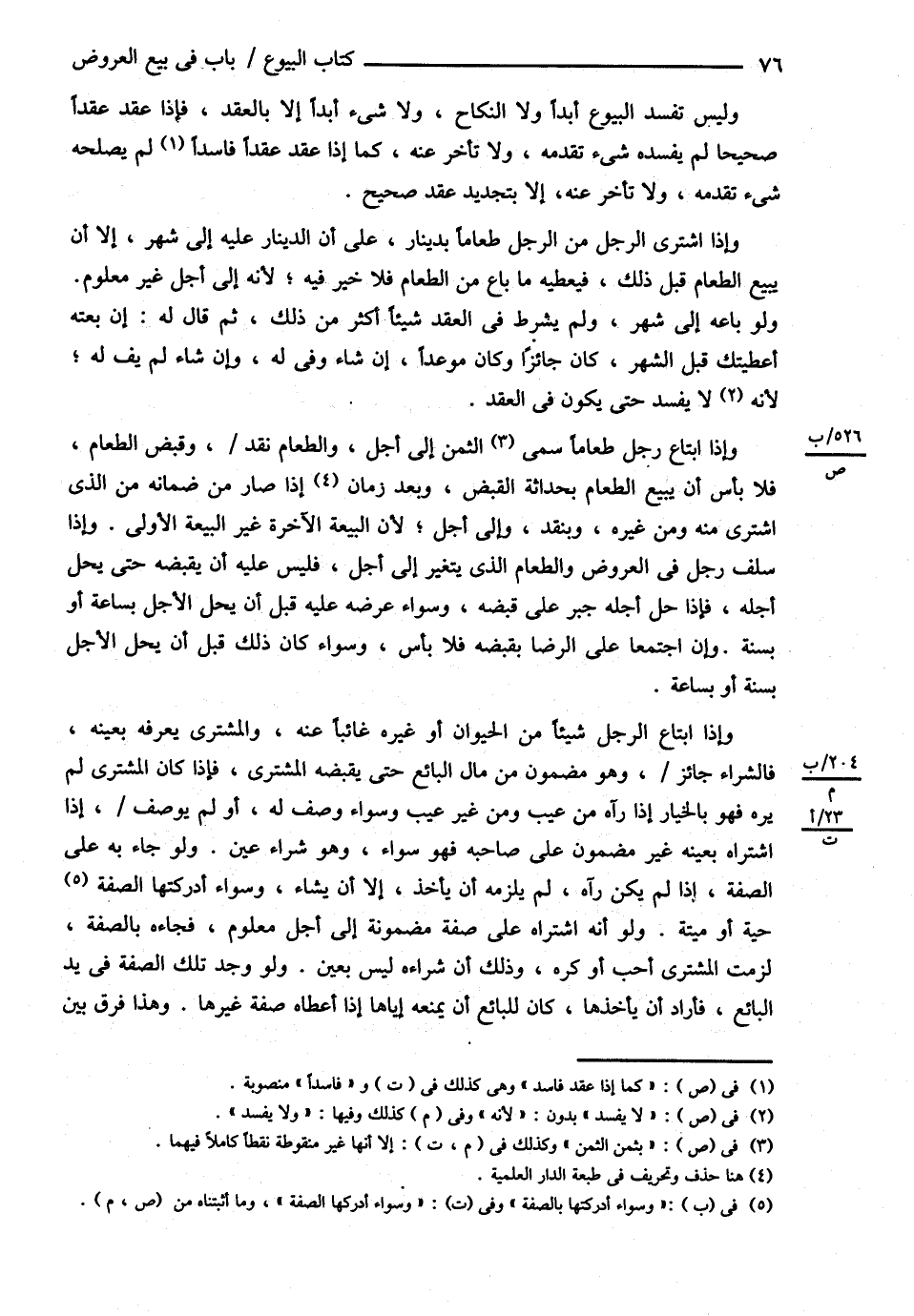 وَلَيْسَ تَفْسُدُ الْبُيُوعُ أَبَدًا وَلاَ النِّكَاحُ وَلاَ شَيْءٌ أَبَدًا إلَّا بِالْعَقْدِ فَإِذَا عَقَدَ عَقْدًا صَحِيحًا لَمْ يُفْسِدْهُ شَيْءٌ تَقَدَّمَهُ وَلاَ تَأَخَّرَ عَنْهُ كَمَا إذَا عَقَدَا فَاسِدًا لَمْ يُصْلِحْهُ شَيْءٌ تَقَدَّمَهُ وَلاَ تَأَخَّرَ عَنْهُ إلَّا بِتَجْدِيدِ عَقْدٍ صَحِيحٍ , وَإِذَا اشْتَرَى الرَّجُلُ مِنْ الرَّجُلِ طَعَامًا بِدِينَارٍ عَلَى أَنَّ الدِّينَارَ عَلَيْهِ إلَى شَهْرٍ إلَّا أَنْ يَبِيعَ الطَّعَامَ قَبْلَ ذَلِكَ فَيُعْطِيَهُ مَا بَاعَ مِنْ الطَّعَامِ فَلاَ خَيْرَ فِيهِ ; لِأَنَّهُ إلَى أَجَلٍ غَيْرِ مَعْلُومٍ وَلَوْ بَاعَهُ إلَى شَهْرٍ وَلَمْ يَشْرِطْ فِي الْعَقْدِ شَيْئًا أَكْثَرَ مِنْ ذَلِكَ ثُمَّ قَالَ لَهُ إنْ بِعْتَهُ أَعْطَيْتُك قَبْلَ الشَّهْرِ , كَانَ جَائِزًا وَكَانَ مَوْعِدًا , إنْ شَاءَ وَفَّى لَهُ , وَإِنْ شَاءَ لَمْ يَفِ لَهُ ; لِأَنَّهُ لاَ يَفْسُدُ حَتَّى يَكُونَ فِي الْعَقْدِ , وَإِذَا ابْتَاعَ رَجُلٌ طَعَامًا سَمَّى الثَّمَنَ إلَى أَجَلٍ وَالطَّعَامُ نَقْدٌ وَقَبَضَ الطَّعَامَ فَلاَ بَأْسَ أَنْ يَبِيعَ الطَّعَامَ بِحَدَاثَةِ الْقَبْضِ وَبَعْدَ زَمَانٍ إذَا صَارَ مِنْ ضَمَانِهِ مِنْ الَّذِي اشْتَرَى مِنْهُ وَمِنْ غَيْرِهِ وَبِنَقْدٍ وَإِلَى أَجَلٍ ; لِأَنَّ الْبَيْعَةَ الْآخِرَةَ غَيْرُ الْبَيْعَةِ الْأُولَى , وَإِذَا سَلَّفَ رَجُلٌ فِي الْعُرُوضِ وَالطَّعَامِ الَّذِي يَتَغَيَّرُ إلَى أَجَلٍ فَلَيْسَ عَلَيْهِ أَنْ يَقْبِضَهُ حَتَّى يَحِلَّ أَجَلُهُ فَإِذَا حَلَّ أَجَلُهُ جُبِرَ عَلَى قَبَضَهُ وَسَوَاءٌ عَرَضَهُ عَلَيْهِ قَبْلَ أَنْ يَحِلَّ الْأَجَلُ بِسَاعَةٍ أَوْ بِسَنَةٍ , وَإِنْ اجْتَمَعَا عَلَى الرِّضَا بِقَبْضِهِ فَلاَ بَأْسَ وَسَوَاءٌ كَانَ ذَلِكَ قَبْلَ أَنْ يَحِلَّ الْأَجَلُ بِسَنَةٍ أَوْ بِسَاعَةٍ .