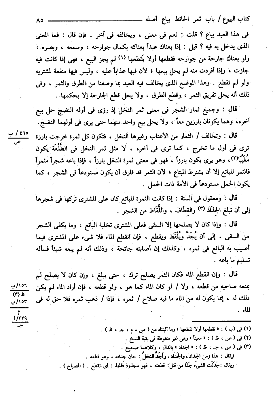 قال : وَإِذَا كَانَ لاَ يُصْلِحُهَا إلَّا السَّقْيُ فَعَلَى الْمُشْتَرِي تَخْلِيَةُ الْبَائِعِ وَمَا يَكْفِي الشَّجَرَ مِنْ السَّقْيِ إلَى أَنْ يُجَذَّ وَيُلْقَطَ وَيُقْطَعَ , فَإِنْ انْقَطَعَ الْمَاءُ فَلاَ شَيْءَ عَلَى الْمُشْتَرِي فِيمَا أُصِيبَ بِهِ الْبَائِعُ فِي ثَمَرِهِ , وَكَذَلِكَ إنْ أَصَابَتْهُ جَائِحَةٌ , وَذَلِكَ أَنَّهُ لَمْ يَبِعْهُ شَيْئًا فَسَأَلَهُ تَسْلِيمَ مَا بَاعَهُ.