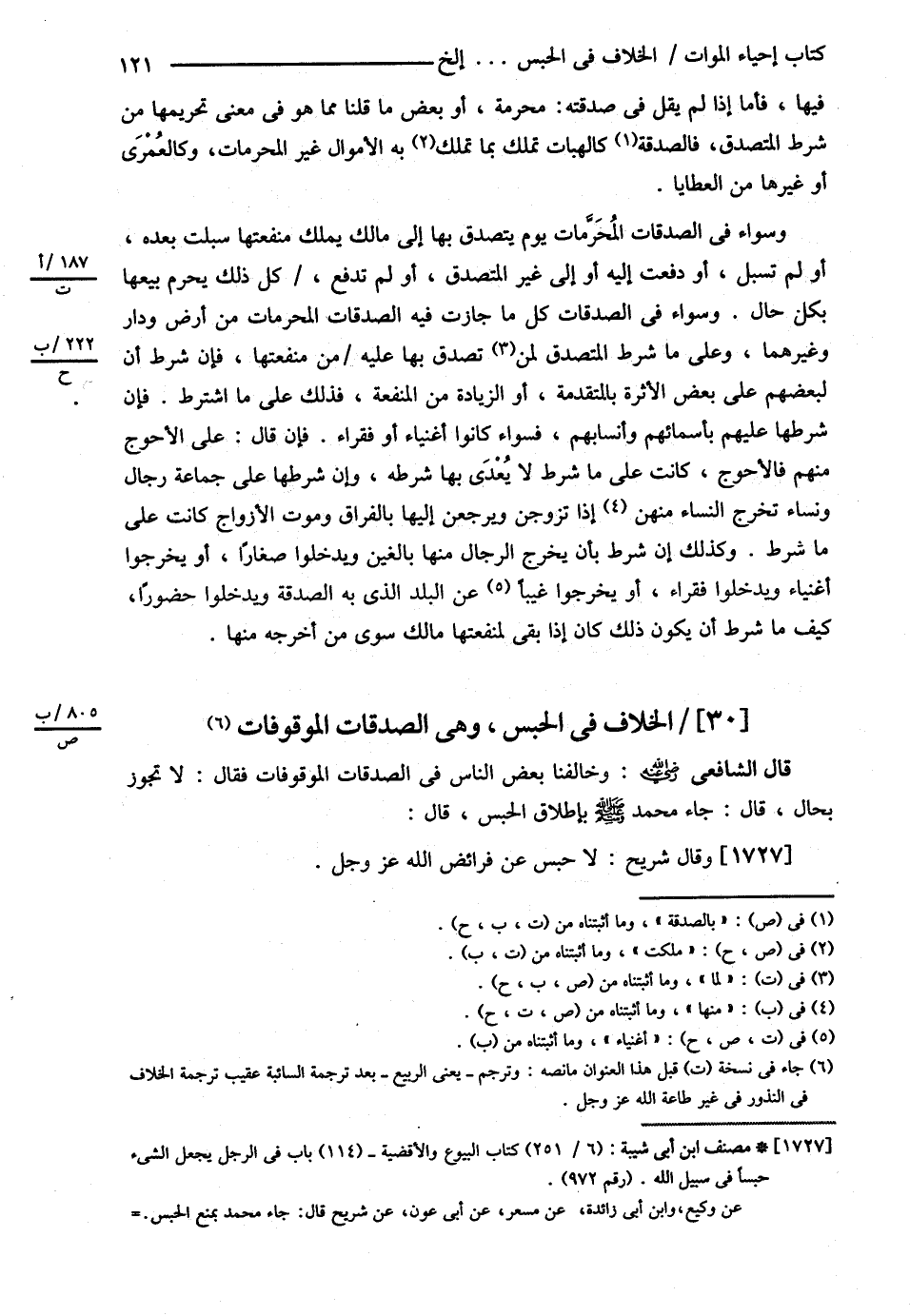 الْخِلاَفُ فِي الْحَبْسِ وَهِيَ الصَّدَقَاتُ الْمَوْقُوفَاتُ