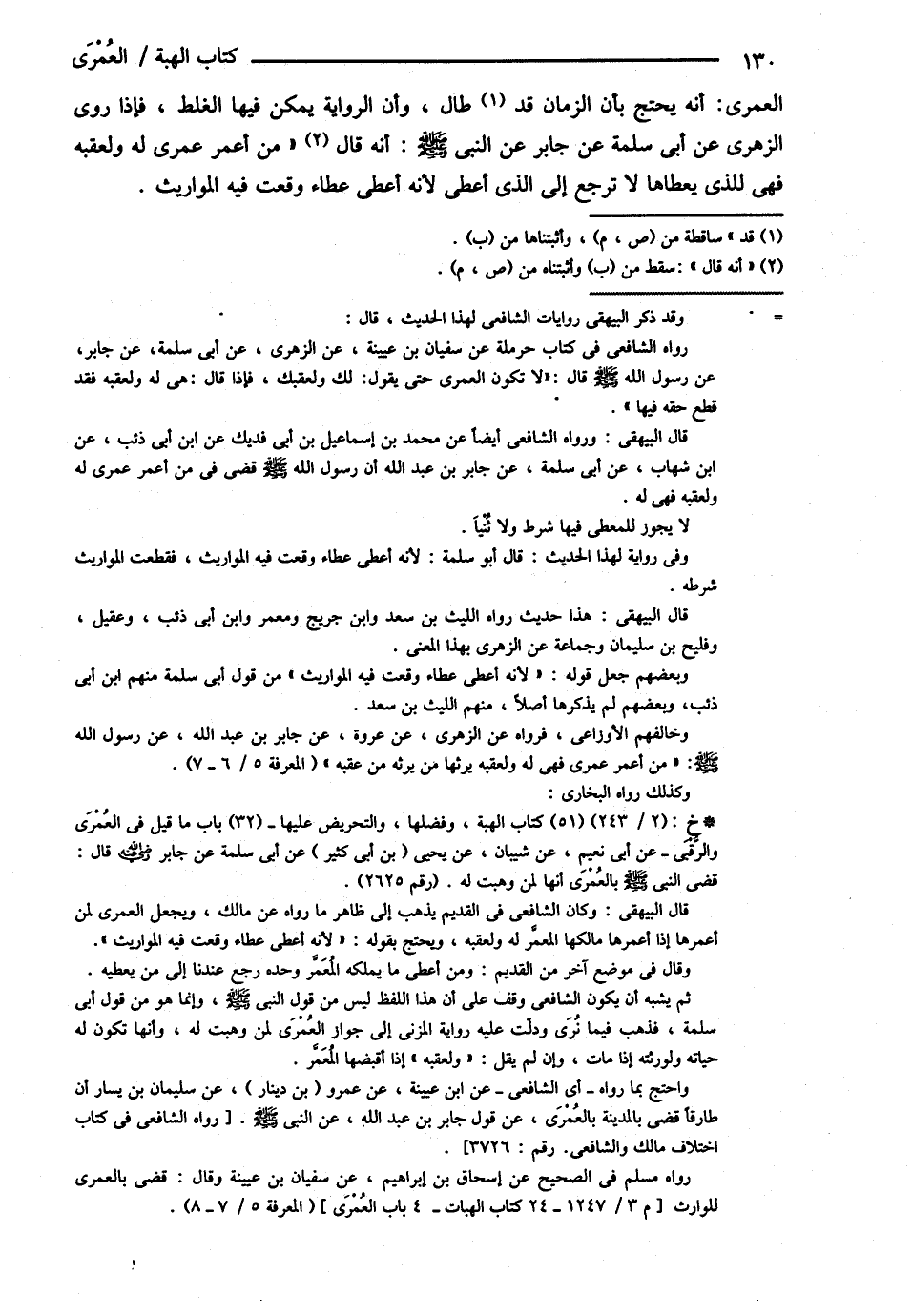 الْعُمْرَى أَنَّهُ يَحْتَجُّ بِأَنَّ الزَّمَانَ قَدْ طَالَ وَأَنَّ الرِّوَايَةَ يُمْكِنُ فِيهَا الْغَلَطُ , فَإِذَا رَوَى الزُّهْرِيُّ عَنْ أَبِي سَلَمَةَ عَنْ جَابِرٍ عَنْ النَّبِيِّ - صلى الله عليه وسلم - { مَنْ أُعْمِرَ عُمْرَى لَهُ وَلِعَقِبِهِ فَهِيَ لِلَّذِي يُعْطَاهَا لاَ تَرْجِعُ إلَى الَّذِي أَعْطَى ; لِأَنَّهُ أَعْطَى عَطَاءً وَقَعَتْ فِيهِ الْمَوَارِيثُ } .@