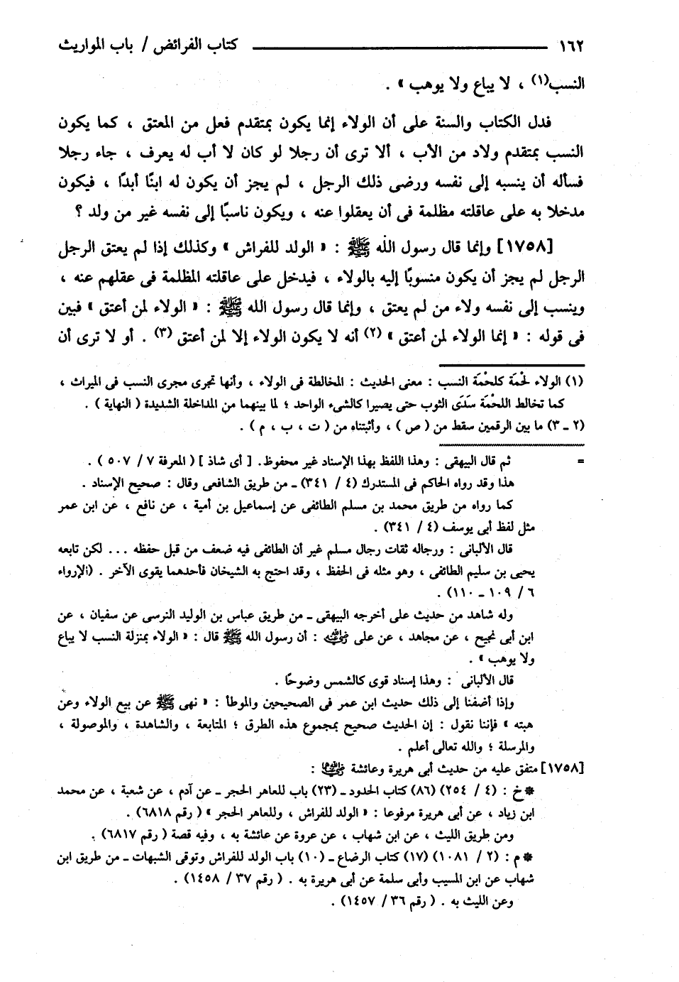 النَّسَبِ لاَ يُبَاعُ وَلاَ يُوهَبُ } فَدَلَّ الْكِتَابُ وَالسُّنَّةُ عَلَى أَنَّ الْوَلاَءَ إنَّمَا يَكُونُ بِمُتَقَدِّمِ فِعْلٍ مِنْ الْمُعْتِقِ كَمَا يَكُونُ النَّسَبُ بِمُتَقَدِّمِ وِلاَدٍ مِنْ الْأَبِ , أَلاَ تَرَى أَنَّ رَجُلاً لَوْ كَانَ لاَ أَبَ لَهُ يُعْرَفُ جَاءَ رَجُلاً فَسَأَلَ أَنْ يَنْسُبَهُ إلَى نَفْسِهِ وَرَضِيَ ذَلِكَ الرَّجُلُ لَمْ يَجُزْ أَنْ يَكُونَ لَهُ ابْنًا أَبَدًا فَيَكُونُ مُدْخِلاً بِهِ عَلَى عَاقِلَتِهِ مَظْلَمَةٌ فِي أَنْ يَعْقِلُوا عَنْهُ وَيَكُونُ نَاسِبًا إلَى نَفْسِهِ غَيْرَ مَنْ وَلَدَ , وَإِنَّمَا قَالَ : رَسُولُ اللَّهِ - صلى الله عليه وسلم - { الْوَلَدُ لِلْفِرَاشِ } , وَكَذَلِكَ إذَا لَمْ يُعْتِقْ الرَّجُلُ الرَّجُلَ لَمْ يَجُزْ أَنْ يَكُونَ مَنْسُوبًا إلَيْهِ بِالْوَلاَءِ فَيَدْخُلَ عَلَى عَاقِلَتِهِ الْمَظْلَمَة فِي عَقْلِهِمْ عَنْهُ وَيَنْسُبَ إلَى نَفْسِهِ وَلاَءَ مَنْ لَمْ يُعْتِقْ , وَإِنَّمَا قَالَ رَسُولُ اللَّهِ - صلى الله عليه وسلم - { الْوَلاَءُ لِمَنْ أَعْتَقَ } فَبَيَّنَ فِي قَوْلِهِ { إنَّمَا الْوَلاَءُ لِمَنْ أَعْتَقَ } أَنَّهُ لاَ يَكُونُ الْوَلاَءُ إلَّا لِمَنْ أَعْتَقَ , أَوَلاَ تَرَى أَنَّ @