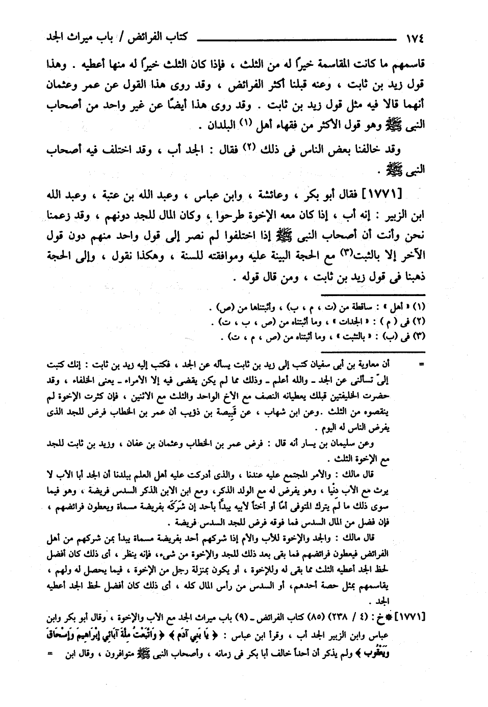 قَاسَمَهُمْ مَا كَانَتْ الْمُقَاسَمَةُ خَيْرًا لَهُ مِنْ الثُّلُثِ , فَإِذَا كَانَ الثُّلُثُ خَيْرًا لَهُ مِنْهَا أُعْطِيهِ , وَهَذَا قَوْلُ زَيْدِ بْنِ ثَابِتٍ وَعَنْهُ قَبِلْنَا أَكْثَرُ الْفَرَائِضِ , وَقَدْ رُوِيَ هَذَا الْقَوْلُ عَنْ عُمَرَ وَعُثْمَانَ أَنَّهُمَا قَالاَ فِيهِ مِثْلَ قَوْلِ زَيْدِ بْنِ ثَابِتٍ , وَقَدْ رُوِيَ هَذَا أَيْضًا عَنْ غَيْرِ وَاحِدٍ مِنْ أَصْحَابِ النَّبِيِّ - صلى الله عليه وسلم - وَهُوَ قَوْلُ الْأَكْثَرِ مِنْ فُقَهَاءِ الْبُلْدَانِ , وَقَدْ خَالَفْنَا بَعْضَ النَّاسِ فِي ذَلِكَ فَقَالَ : الْجَدُّ أَبٌ , وَقَدْ اخْتَلَفَ فِيهِ أَصْحَابُ النَّبِيِّ - صلى الله عليه وسلم - فَقَالَ : أَبُو بَكْرٍ وَعَائِشَةُ وَابْنُ عَبَّاسٍ وَعَبْدُ اللَّهِ بْنُ عُتْبَةَ وَعَبْدُ اللَّهِ بْنُ الزُّبَيْرِ رضي الله عنه . إنَّهُ أَبٌ إذَا كَانَ مَعَهُ الْإِخْوَةُ طُرِحُوا وَكَانَ الْمَالُ لِلْجَدِّ دُونَهُمْ , وَقَدْ زَعَمْنَا نَحْنُ وَأَنْتَ أَنَّ أَصْحَابَ النَّبِيِّ - صلى الله عليه وسلم - إذَا اخْتَلَفُوا لَمْ نَصِرْ إلَى قَوْلِ وَاحِدٍ مِنْهُمْ دُونَ قَوْلِ الْآخَرِ إلَّا بِالتَّثَبُّتِ مَعَ الْحُجَّةِ الْبَيِّنَةِ عَلَيْهِ وَمُوَافَقَتِهِ لِلسُّنَّةِ وَهَكَذَا نَقُولُ وَإِلَى الْحُجَّةِ ذَهَبْنَا فِي قَوْلِ زَيْدِ بْنِ ثَابِتٍ وَمَنْ قَالَ قَوْلَهُ .@