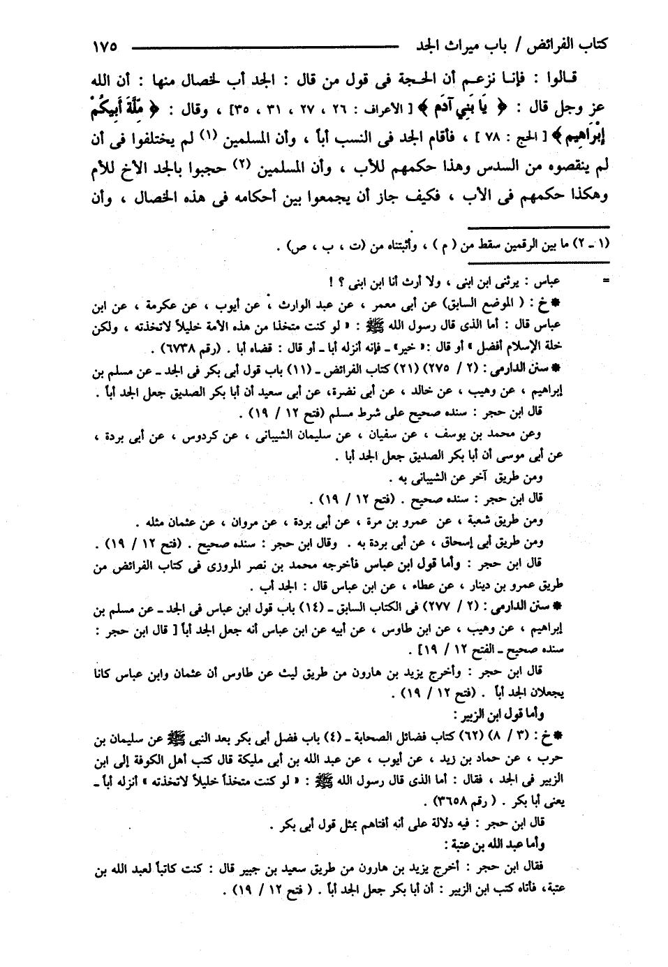 قَالُوا : فَإِنَّا نَزْعُمُ أَنَّ الْحُجَّةَ فِي قَوْلِ مَنْ قَالَ : الْجَدُّ أَبٌ لِخِصَالٍ مِنْهَا أَنَّ اللَّهَ عَزَّ وَجَلَّ قَالَ : { يَا بَنِي آدَمَ } وَقَالَ : { مِلَّةَ أَبِيكُمْ إبْرَاهِيمَ } فَأَقَامَ الْجَدَّ فِي النَّسَبِ أَبًا وَأَنَّ الْمُسْلِمِينَ لَمْ يَخْتَلِفُوا فِي أَنْ لَمْ يُنْقِصُوهُ مِنْ السُّدُسِ , وَهَذَا حُكْمُهُمْ لِلْأَبِ وَأَنَّ الْمُسْلِمِينَ حَجَبُوا بِالْجَدِّ الْأَخَ لِلْأُمِّ وَهَكَذَا حُكْمُهُمْ فِي الْأَبِ فَكَيْفَ جَازَ أَنْ يَجْمَعُوا بَيْنَ أَحْكَامِهِ فِي هَذِهِ الْخِصَالِ وَأَنْ@