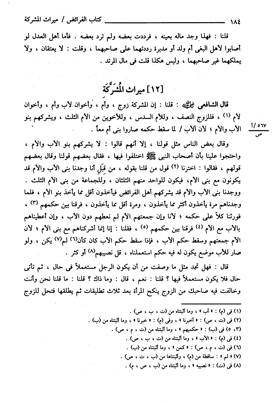 قَالَ الشَّافِعِيُّ : رحمه الله تعالى قُلْنَا : إنَّ الْمُشْرِكَةَ زَوْجٌ وَأُمٌّ وَأَخَوَانِ لِأَبٍ وَأُمٌّ وَأَخَوَانِ لِأُمٍّ فَلِلزَّوْجِ النِّصْفُ وَلِلْأُمِّ السُّدُسُ وَلِلْأَخَوَيْنِ مِنْ الْأُمِّ الثُّلُثُ وَيُشْرِكُهُمْ بَنُو الْأَبِ ; لِأَنَّ الْأَبَ لَمَّا سَقَطَ حُكْمُهُ صَارُوا بَنِي أُمٍّ مَعًا وَقَالَ : بَعْضُ النَّاسِ مِثْلَ قَوْلِنَا إلَّا أَنَّهُمْ قَالُوا لاَ يُشْرِكُهُمْ بَنُو الْأَبِ وَالْأُمِّ وَاحْتَجُّوا عَلَيْنَا بِأَنَّ أَصْحَابَ النَّبِيِّ - صلى الله عليه وسلم - اخْتَلَفُوا فِيهَا فَقَالَ بَعْضُهُمْ قَوْلَنَا وَقَالَ بَعْضُهُمْ قَوْلَهُمْ فَقَالُوا اخْتَرْنَا قَوْلَ مَنْ قُلْنَا بِقَوْلِهِ مِنْ قَبْلُ أَنَّا وَجَدْنَا بَنِي الْأَبِ وَالْأُمِّ قَدْ يَكُونُونَ مَعَ بَنِي الْأُمِّ فَيَكُونُ لِلْوَاحِدِ مِنْهُمْ الثُّلُثَانِ وَلِلْجَمَاعَةِ مِنْ بَنِي الْأُمِّ الثُّلُثُ وَوَجَدْنَا بَنِي الْأَبِ وَالْأُمِّ قَدْ يُشْرِكُهُمْ أَهْلُ الْفَرَائِضِ فَيَأْخُذُونَ أَقَلَّ مِمَّا يَأْخُذُ بَنُو الْأُمِّ فَلَمَّا وَجَدْنَاهُمْ مَرَّةً يَأْخُذُونَ أَكْثَرَ مِمَّا يَأْخُذُونَ وَمَرَّةً أَقَلَّ مِمَّا يَأْخُذُونَ فَرَّقْنَا بَيْنَ حُكْمَيْهِمْ فَوَرَّثْنَا كُلًّا عَلَى حُكْمِهِ ; لِأَنَّا وَإِنْ جَمَعَتْهُمْ الْأُمُّ لَمْ نُعْطِهِمْ دُونَ الْأَبِ , وَإِنْ أَعْطَيْنَاهُمْ بِالْأَبِ مَعَ الْأُمِّ فَرَّقْنَا بَيْنَ حُكْمَيْهِمْ فَقُلْنَا إنَّا إنَّمَا أَشْرَكْنَاهُمْ مَعَ بَنِي الْأُمِّ ; لِأَنَّ الْأُمَّ جَمَعَتْهُمْ وَسَقَطَ حُكْمُ الْأَبِ , فَإِذَا سَقَطَ حُكْمُ الْأَبِ كَانَ كَأَنْ لَمْ يَكُنْ , وَلَوْ صَارَ لِلْأَبِ مَوْضِعٌ يَكُونُ لَهُ فِيهِ حُكْمٌ اسْتَعْمَلْنَاهُ قَلَّ نُصِيبُهُمْ , أَوْ كَثُرَ قَالَ : فَهَلْ تَجِدُ مِثْلَ مَا وَصَفْت مِنْ أَنْ يَكُونَ الرَّجُلُ مُسْتَعْمِلاً فِي حَالٍ ثُمَّ تَأْتِي حَالٌ فَلاَ يَكُونُ مُسْتَعْمِلاً فِيهَا ؟ قُلْنَا نَعَمْ , قَالَ : وَمَا ذَاكَ ؟ قُلْنَا مَا قُلْنَا نَحْنُ وَأَنْتَ وَخَالَفْت فِيهِ صَاحِبَك مِنْ الزَّوْجِ يَنْكِحُ الْمَرْأَةَ بَعْدَ ثَلاَثِ تَطْلِيقَاتٍ ثُمَّ يُطَلِّقُهَا فَتَحِلُّ لِلزَّوْجِ @