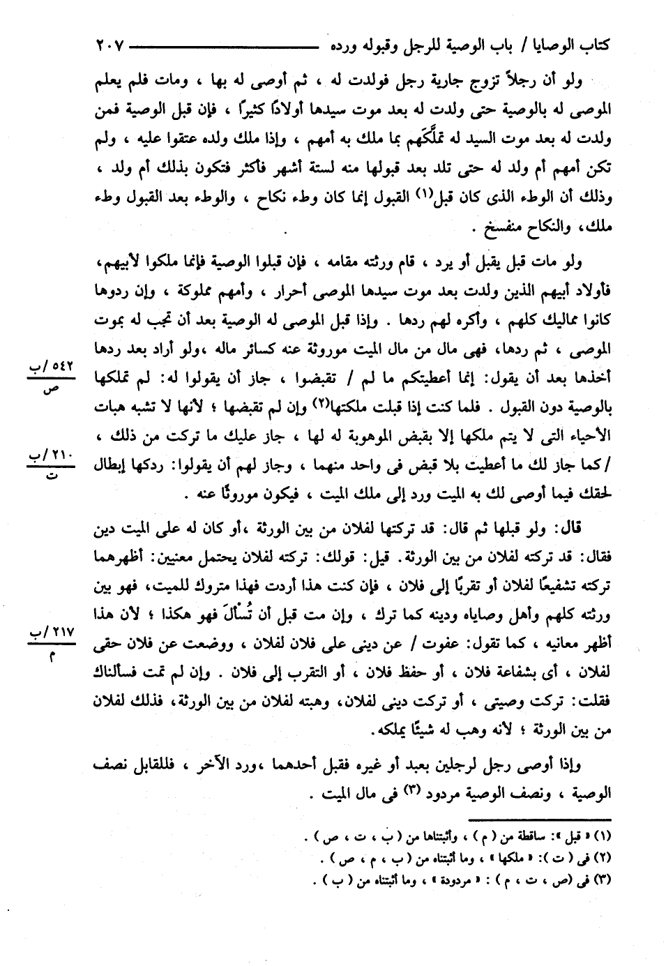 وَلَوْ أَنَّ رَجُلاً تَزَوَّجَ جَارِيَةَ رَجُلٍ فَوَلَدَتْ لَهُ ثُمَّ أَوْصَى لَهُ بِهَا وَمَاتَ فَلَمْ يَعْلَمْ الْمُوصَى لَهُ بِالْوَصِيَّةِ حَتَّى وَلَدَتْ لَهُ بَعْدَ مَوْتِ سَيِّدِهَا أَوْلاَدًا كَثِيرًا . فَإِنْ قَبِلَ الْوَصِيَّةَ فَمَنْ وَلَدَتْ لَهُ بَعْدَ مَوْتِ السَّيِّدِ لَهُ تَمْلِكُهُمْ بِمَا مَلَكَ بِهِ أُمَّهُمْ , وَإِذَا مَلَكَ وَلَدَهُ عَتَقُوا عَلَيْهِ , وَلَمْ تَكُنْ أُمُّهُمْ أُمَّ وَلَدٍ لَهُ حَتَّى تَلِدَ بَعْدَ قَبُولِهَا مِنْهُ لِسِتَّةِ أَشْهُرٍ فَأَكْثَرَ فَتَكُونُ بِذَلِكَ أُمَّ وَلَدٍ وَذَلِكَ أَنَّ الْوَطْءَ الَّذِي كَانَ قَبْلَ الْقَبُولِ إنَّمَا كَانَ وَطْءَ نِكَاحٍ وَالْوَطْءُ بَعْدَ الْقَبُولِ وَطْءَ مِلْكٍ وَالنِّكَاحُ مُنْفَسِخٌ , وَلَوْ مَاتَ قَبْلَ أَنْ يَرُدَّ أَوْ يَقْبَلَ قَامَ وَرَثَتُهُ مَقَامَهُ , فَإِنْ قَبِلُوا الْوَصِيَّةَ فَإِنَّمَا مَلَكُوا لِأَبِيهِمْ فَأَوْلاَدُ أَبِيهِمْ الَّذِينَ وَلَدَتْ بَعْدَ مَوْتِ سَيِّدِهَا الْمُوصِي أَحْرَارٌ وَأُمُّهُمْ مَمْلُوكَةٌ , وَإِنْ رَدُّوهَا كَانُوا مَمَالِيكَ كُلَّهُمْ وَأَكْرَهُ لَهُمْ رَدَّهَا , وَإِذَا قَبِلَ الْمُوصَى لَهُ الْوَصِيَّةَ بَعْدَ أَنْ تَجِبَ لَهُ بِمَوْتِ الْمُوصِي ثُمَّ رَدَّهَا فَهِيَ مَالٌ مِنْ مَالِ الْمَيِّتِ مَوْرُوثَةٌ عَنْهُ كَسَائِرِ مَالِهِ , وَلَوْ أَرَادَ بَعْدَ رَدِّهَا أَخْذَهَا بِأَنْ يَقُولَ إنَّمَا أَعْطَيْتُكُمْ مَا لَمْ تَقْبِضُوا جَازَ أَنْ يَقُولُوا لَهُ لَمْ تَمْلِكْهَا بِالْوَصِيَّةِ دُونَ الْقَبُولِ . فَلَمَّا كُنْت إذَا قَبِلْت مَلِكَتَهَا , وَإِنْ لَمْ تَقْبِضْهَا ; لِأَنَّهَا لاَ تُشْبِهُ هِبَاتِ الْأَحْيَاءِ الَّتِي لاَ يَتِمُّ مِلْكُهَا إلَّا بِقَبْضِ الْمَوْهُوبَةِ لَهُ لَهَا جَازَ عَلَيْك مَا تُرِكَتْ مِنْ ذَلِكَ كَمَا جَازَ لَك مَا أَعْطَيْت بِلاَ قَبْضٍ فِي وَاحِدٍ مِنْهُمَا وَجَازَ لَهُمْ أَنْ يَقُولُوا : ردكها إبْطَالٌ لِحَقِّك فِيمَا أَوْصَى لَك بِهِ الْمَيِّتُ وَرَدٌّ إلَى مِلْكِ الْمَيِّتِ فَيَكُونُ مَوْرُوثًا عَنْهُ . ( قَالَ ) وَلَوْ قَبِلَهَا ثُمَّ قَالَ : قَدْ تَرَكْتُهَا لِفُلاَنٍ مِنْ بَيْنِ الْوَرَثَةِ , أَوْ كَانَ لَهُ عَلَى الْمَيِّتِ دَيْنٌ فَقَالَ : فَقَدْ تَرَكْته لِفُلاَنٍ مِنْ بَيْنِ الْوَرَثَةِ قِيلَ : قَوْلُك تَرَكْته لِفُلاَنٍ يَحْتَمِلُ مَعْنَيَيْنِ أَظْهَرُهُمَا تَرَكْته تَشْفِيعًا لِفُلاَنٍ , أَوْ تَقَرُّبًا إلَى فُلاَنٍ فَإِنْ كُنْت هَذَا أَرَدْت فَهَذَا مَتْرُوكٌ لِلْمَيِّتِ فَهُوَ بَيْنَ وَرَثَتِهِ كُلِّهِمْ وَأَهْلِ وَصَايَاهُ وَدَيْنِهِ كَمَا تَرَكَ , وَإِنْ مِتَّ قَبْلَ أَنْ تَسْأَلَ فَهُوَ هَكَذَا ; لِأَنَّ هَذَا أَظْهَرُ مَعَانِيهِ كَمَا تَقُولُ عَفَوْت عَنْ دَيْنِي عَلَى فُلاَنٍ لِفُلاَنٍ وَوَضَعْت عَنْ فُلاَنٍ حَقِّي لِفُلاَنٍ أَيْ بِشَفَاعَةِ فُلاَنٍ , أَوْ حِفْظِ فُلاَنٍ أَوْ التَّقَرُّبِ إلَى فُلاَنٍ , وَإِنْ لَمْ تَمُتْ فَسَأَلْنَاك فَقُلْت : تَرَكْت وَصِيَّتِي أَوْ تَرَكْت دَيْنِي لِفُلاَنٍ وَهَبْته لِفُلاَنٍ مِنْ بَيْنِ الْوَرَثَةِ فَذَلِكَ لِفُلاَنٍ مِنْ بَيْنِ الْوَرَثَةِ ; لِأَنَّهُ وَهَبَ لَهُ شَيْئًا يَمْلِكُهُ , وَإِذَا أَوْصَى رَجُلٌ لِرَجُلَيْنِ بِعَبْدٍ أَنَّ غَيْرَهُ فَقَبِلَ أَحَدُهُمَا وَرَدَّ الْآخَرُ فَلِلْقَابِلِ نِصْفُ الْوَصِيَّةِ وَنِصْفُ الْوَصِيَّةِ مَرْدُودٌ فِي مَالِ الْمَيِّتِ ,@