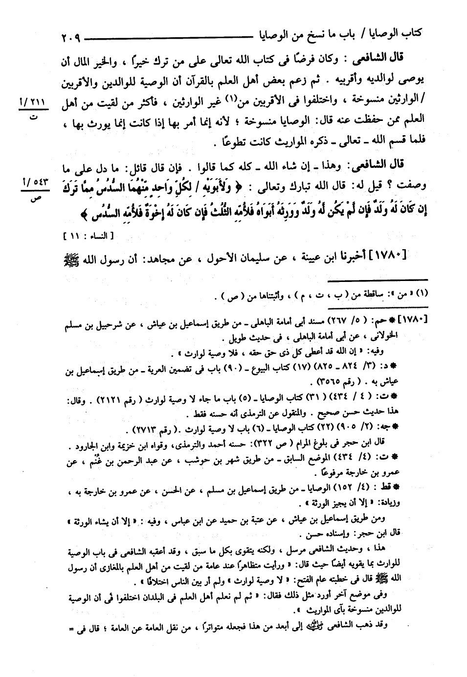 قَالَ الشَّافِعِيُّ: وَكَانَ فَرْضًا فِي كِتَابِ اللَّهِ تَعَالَى عَلَى مَنْ تَرَكَ خَيْرًا وَالْخَيْرُ الْمَالُ أَنْ يُوصِيَ لِوَالِدَيْهِ وَأَقْرَبِيهِ ثُمَّ زَعَمَ بَعْضُ أَهْلِ الْعِلْمِ بِالْقُرْآنِ أَنَّ الْوَصِيَّةَ لِلْوَالِدَيْنِ وَالْأَقْرَبِينَ الْوَارِثِينَ مَنْسُوخَةٌ وَاخْتَلَفُوا فِي الْأَقْرَبِينَ غَيْرِ الْوَارِثِينَ فَأَكْثَرُ مَنْ لَقِيت مِنْ أَهْلِ الْعِلْمِ مِمَّنْ حَفِظْت عَنْهُ قَالَ الْوَصَايَا مَنْسُوخَةٌ ; لِأَنَّهُ إنَّمَا أَمَرَ بِهَا إذَا كَانَتْ إنَّمَا يُورَثُ بِهَا فَلَمَّا قَسَّمَ اللَّهُ تَعَالَى ذِكْرَهُ الْمَوَارِيثَ كَانَتْ تَطَوُّعًا.