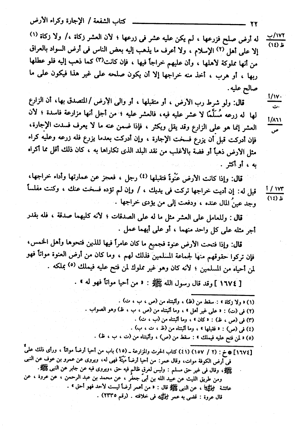 لَهُ أَرْضُ صُلْحٍ فَزَرَعَهَا لَمْ يَكُنْ عَلَيْهِ عُشْرٌ فِي زَرْعِهَا ; لِأَنَّ الْعُشْرَ زَكَاةٌ , وَلاَ زَكَاةَ إلَّا عَلَى أَهْلِ الْإِسْلاَمِ , وَلاَ أَعْرِفُ مَا يَذْهَبُ إلَيْهِ بَعْضُ النَّاسِ فِي أَرْضِ السَّوَادِ بِالْعِرَاقِ مِنْ أَنَّهَا مَمْلُوكَةٌ لِأَهْلِهَا وَأَنَّ عَلَيْهِمْ خَرَاجًا فِيهَا فَإِنْ كَانَتْ كَمَا ذَهَبَ إلَيْهِ , فَلَوْ عَطَّلَهَا رَبُّهَا , أَوْ هَرَبَ أُخِذَ مِنْهُ خَرَاجُهَا إلَّا أَنْ يَكُونَ صُلْحُهُ عَلَى غَيْرِ هَذَا فَيَكُونَ عَلَى مَا صَالَحَ عَلَيْهِ . قَالَ : وَلَوْ شَرَطَ رَبُّ الْأَرْضِ , أَوْ مُتَقَبِّلُهَا , أَوْ وَالِي الْأَرْضِ الْمُتَصَدِّقُ بِهَا أَنَّ الزَّارِعَ لَهَا لَهُ زَرْعُهُ مُسْلِمًا لاَ عُشْرَ عَلَيْهِ فِيهِ فَالْعُشْرُ عَلَيْهِ مِنْ أَجْلِ أَنَّهَا مُزَارَعَةٌ فَاسِدَةٌ ; لِأَنَّ الْعُشْرَ إنَّمَا هُوَ عَلَى الزَّارِعِ , وَقَدْ يَقِلُّ وَيَكْثُرُ , فَإِذَا ضَمِنَ عَنْهُ مَا لاَ يَعْرِفُ فَسَدَتْ الْإِجَارَةُ فَإِنْ أُدْرِكَتْ قَبْلَ أَنْ يَزْرَعَ فُسِخَتْ الْإِجَارَةُ , وَإِنْ أُدْرِكَتْ بَعْدَمَا يَزْرَعُ فَلَهُ زَرْعُهُ وَعَلَيْهِ كِرَاءُ مِثْلِ الْأَرْضِ ذَهَبًا أَوْ فِضَّةً بِالْأَغْلَبِ مِنْ نَقْدِ الْبَلَدِ الَّذِي تَكَارَاهَا بِهِ كَانَ ذَلِكَ أَقَلَّ مِمَّا أَكْرَاهُ بِهِ , أَوْ أَكْثَرَ قَالَ , وَإِذَا كَانَتْ الْأَرْضُ عَنْوَةً فَتَقَبَّلَهَا رَجُلٌ فَعَجَزَ عَنْ عِمَارَتِهَا وَأَدَاءِ خَرَاجِهَا قِيلَ لَهُ إنْ أَدَّيْت خَرَاجَهَا تُرِكَتْ فِي يَدَيْك , وَإِنْ لَمْ تُؤَدِّهِ فُسِخَتْ عَنْك وَكُنْت مُفْلِسًا وُجِدَ عَيْنُ الْمَالِ عِنْدَهُ وَدُفِعَتْ إلَى مَنْ يُؤَدِّي خَرَاجَهَا . قَالَ : وَلِلْعَامِلِ عَلَى الْعُشْرِ مِثْلُ مَا لَهُ عَلَى الصَّدَقَاتِ ; لِأَنَّ كِلَيْهِمَا صَدَقَةٌ فَلَهُ بِقَدْرِ أَجْرِ مِثْلِهِ عَلَى كُلِّ وَاحِدٍ مِنْهُمَا , أَوْ عَلَى أَيِّهِمَا عَمِلَ . قَالَ : وَإِذَا فُتِحَتْ الْأَرْضُ عَنْوَةً فَجَمِيعُ مَا كَانَ عَامِرًا فِيهَا لِلَّذِينَ فَتَحُوهَا وَأَهْلِ الْخُمُسِ فَإِنْ تَرَكُوا حُقُوقَهُمْ مِنْهَا لِجَمَاعَةِ الْمُسْلِمِينَ فَذَلِكَ لَهُمْ وَمَا كَانَ مِنْ أَرْضِ الْعَنْوَةِ مَوَاتًا فَهُوَ لِمَنْ أَحْيَاهُ مِنْ الْمُسْلِمِينَ ; لِأَنَّهُ كَانَ , وَهُوَ غَيْرُ مَمْلُوكٍ لِمَنْ فَتَحَ عَلَيْهِ فَيُمْلَكُ بِمِلْكِهِ , وَقَدْ قَالَ رَسُولُ اللَّهِ - صلى الله عليه وسلم - { مَنْ أَحْيَا مَوَاتًا فَهُوَ لَهُ } ,@
