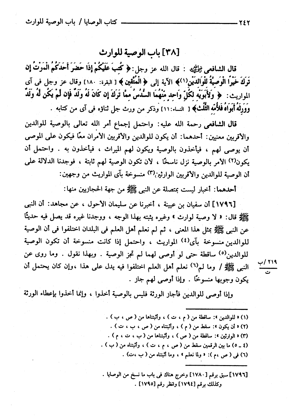 قَالَ الشَّافِعِيُّ : رحمه الله تعالى قَالَ : اللَّهُ عَزَّ وَجَلَّ : ? كُتِبَ عَلَيْكُمْ إذَا حَضَرَ أَحَدَكُمْ الْمَوْتُ إنْ تَرَكَ خَيْرًا الْوَصِيَّةُ لِلْوَالِدَيْنِ ? الآيَةَ. إلَى " الْمُتَّقِينَ " وَقَالَ عَزَّ وَجَلَّ فِي آيِ الْمَوَارِيثِ { وَلِأَبَوَيْهِ لِكُلِّ وَاحِدٍ مِنْهُمَا السُّدُسُ مِمَّا تَرَكَ إنْ كَانَ لَهُ وَلَدٌ فَإِنْ لَمْ يَكُنْ لَهُ وَلَدٌ وَوَرِثَهُ أَبَوَاهُ فَلِأُمِّهِ الثُّلُثُ } وَذَكَرَ مَنْ وَرِثَ جَلَّ ثَنَاؤُهُ فِي آيٍ مِنْ كِتَابِهِ .