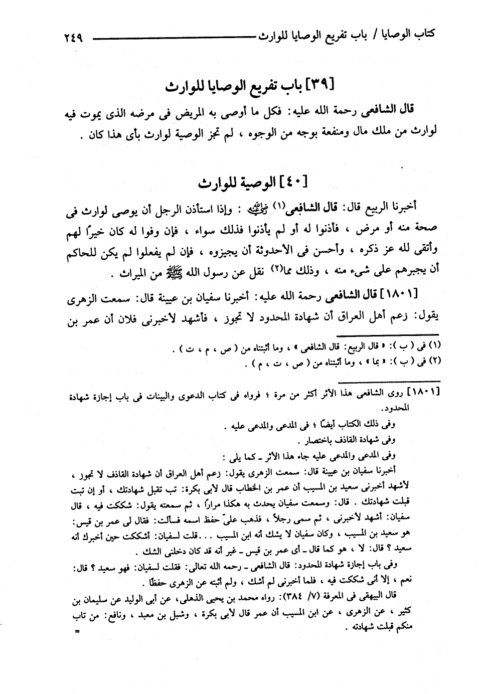 قَالَ الشَّافِعِيُّ : أَخْبَرَنَا سُفْيَانُ بْنُ عُيَيْنَةَ قَالَ : سَمِعْت الزُّهْرِيَّ يَقُولُ : زَعَمَ أَهْلُ الْعِرَاقِ أَنَّ شَهَادَةَ الْمَحْدُودِ لاَ تَجُوزُ فَأَشْهَدُ لاََخْبَرَنِي فُلاَنٌ أَنَّ عُمَرَ بْنَ@