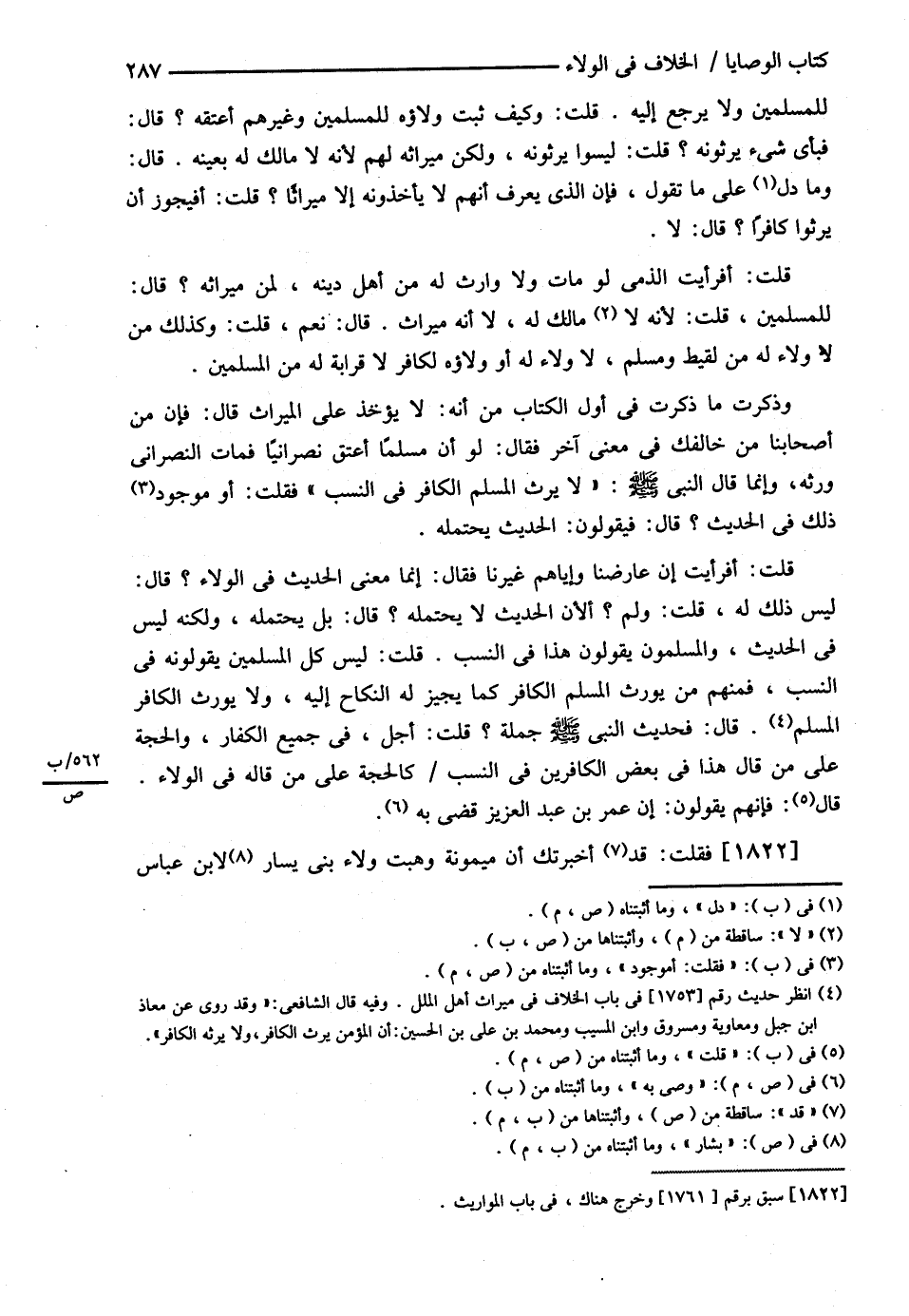 لِلْمُسْلِمِينَ , وَلاَ يَرْجِعُ إلَيْهِ قُلْت وَكَيْفَ ثَبَتَ , وَلاَؤُهُ لِلْمُسْلِمِينَ وَغَيْرُهُمْ أَعْتَقَهُ ؟ قَالَ فَبِأَيِّ شَيْءٍ يَرِثُونَهُ ؟ قُلْت لَيْسُوا يَرِثُونَهُ وَلَكِنَّ مِيرَاثَهُ لَهُمْ ; لِأَنَّهُ لاَ مَالِكَ لَهُ بِعَيْنِهِ قَالَ : وَمَا دَلَّك عَلَى مَا تَقُولُ , فَإِنَّ الَّذِي يُعْرَفُ أَنَّهُمْ لاَ يَأْخُذُونَهُ إلَّا مِيرَاثًا ؟ قُلْت أَفَيَجُوزُ أَنْ يَرِثُوا كَافِرًا ؟ قَالَ : لاَ قُلْت أَفَرَأَيْت الذِّمِّيَّ لَوْ مَاتَ , وَلاَ وَارِثَ لَهُ مِنْ أَهْلِ دِينِهِ لِمَنْ مِيرَاثُهُ ؟ قَالَ : لِلْمُسْلِمِينَ قُلْت ; لِأَنَّهُ لاَ مَالِكَ لَهُ لاَ أَنَّهُ مِيرَاثٌ قَالَ : نَعَمْ قُلْت , وَكَذَلِكَ مَنْ لاَ وَلاَءَ مِنْ لَقِيطٍ وَمُسْلِمٍ لاَ وَلاَءَ لَهُ , أَوْ , وَلاَؤُهُ لِكَافِرٍ لاَ قَرَابَةَ لَهُ مِنْ الْمُسْلِمِينَ وَذَكَرْت مَا ذَكَرْت فِي أَوَّلِ الْكِتَابِ مِنْ أَنَّهُ لاَ يُؤْخَذُ عَلَى الْمِيرَاثِ قَالَ : فَإِنَّ مِنْ أَصْحَابِنَا مَنْ خَالَفَك فِي مَعْنًى آخَرَ فَقَالَ : لَوْ أَنَّ مُسْلِمًا أَعْتَقَ نَصْرَانِيًّا فَمَاتَ النَّصْرَانِيُّ وَرِثَهُ إنَّمَا قَالَ : النَّبِيُّ - صلى الله عليه وسلم - { لاَ يَرِثُ الْمُسْلِمُ الْكَافِرَ فِي النَّسَبِ } فَقُلْت أَمَوْجُودٌ ذَلِكَ فِي الْحَدِيثِ ؟ قَالَ فَيَقُولُونَ الْحَدِيثُ يَحْتَمِلُهُ قُلْت أَفَرَأَيْت إنْ عَارَضَنَا وَإِيَّاهُمْ غَيْرُنَا فَقَالَ : فَإِنَّمَا مَعْنَى الْحَدِيثِ فِي الْوَلاَءِ ؟ قَالَ : لَيْسَ ذَلِكَ لَهُ قُلْت وَلِمَ ؟ أَلِأَنَّ الْحَدِيثَ لاَ يَحْتَمِلُهُ ؟ قَالَ : بَلْ يَحْتَمِلُهُ وَلَكِنَّهُ لَيْسَ فِي الْحَدِيثِ وَالْمُسْلِمُونَ يَقُولُونَ هَذَا فِي النَّسَبِ قُلْت لَيْسَ كُلُّ الْمُسْلِمِينَ يَقُولُونَهُ فِي النَّسَبِ فَمِنْهُمْ مِنْ يُوَرِّثُ الْمُسْلِمَ الْكَافِرَ كَمَا يُجِيزُ لَهُ النِّكَاحَ إلَيْهِ , وَلاَ يُوَرِّثُ الْكَافِرَ الْمُسْلِمَ قَالَ : فَحَدِيثُ النَّبِيِّ - صلى الله عليه وسلم - جُمْلَةً ؟ قُلْت أَجَلْ فِي جَمِيعِ الْكُفَّارِ وَالْحُجَّةُ عَلَى مَنْ قَالَ : هَذَا فِي بَعْضِ الْكَافِرِينَ فِي النَّسَبِ كَالْحَجَّةِ عَلَى مَنْ قَالَ : فِي الْوَلاَءِ قُلْت فَإِنَّهُمْ يَقُولُونَ إنْ عُمَرَ بْنَ عَبْدِ الْعَزِيزِ قَضَى بِهِ فَقُلْت قَدْ أَخْبَرْتُك أَنَّ مَيْمُونَةَ وَهَبَتْ وَلاَءَ بَنِي يَسَارٍ لِابْنِ عَبَّاسٍ@