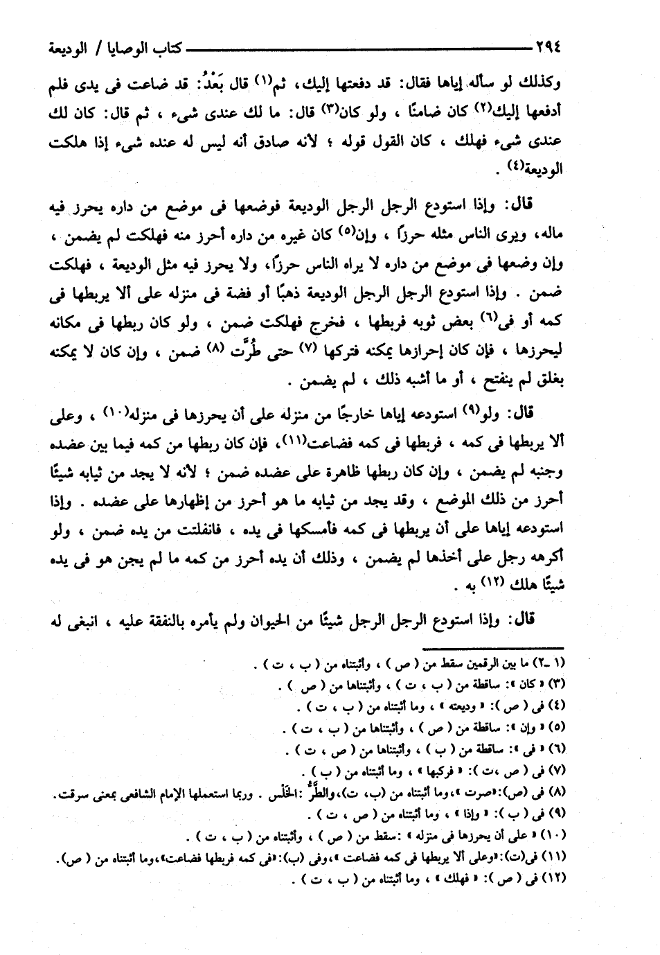 وَإِذَا اسْتَوْدَعَ الرَّجُلُ الرَّجُلَ الْوَدِيعَةَ ذَهَبَا , أَوْ فِضَّةً فِي مَنْزِلِهِ عَلَى أَنْ لاَ يَرْبِطَهَا فِي كُمِّهِ أَوْ بَعْضِ ثَوْبِهِ فَرَبَطَهَا فَخَرَجَ فَهَلَكَتْ ضَمِنَ , وَلَوْ كَانَ رَبَطَهَا فِي مَكَانِهِ لِيُحْرِزَهَا فَإِنْ كَانَ إحْرَازُهَا يُمْكِنُهُ فَتَرَكَهَا حَتَّى طَرَّتْ ضَمِنَ , وَإِنْ كَانَ لاَ يُمْكِنهُ بِغَلْقٍ لَمْ يَنْفَتِحُ , أَوْ مَا أَشْبَهَ ذَلِكَ لَمْ يَضْمَنْ .