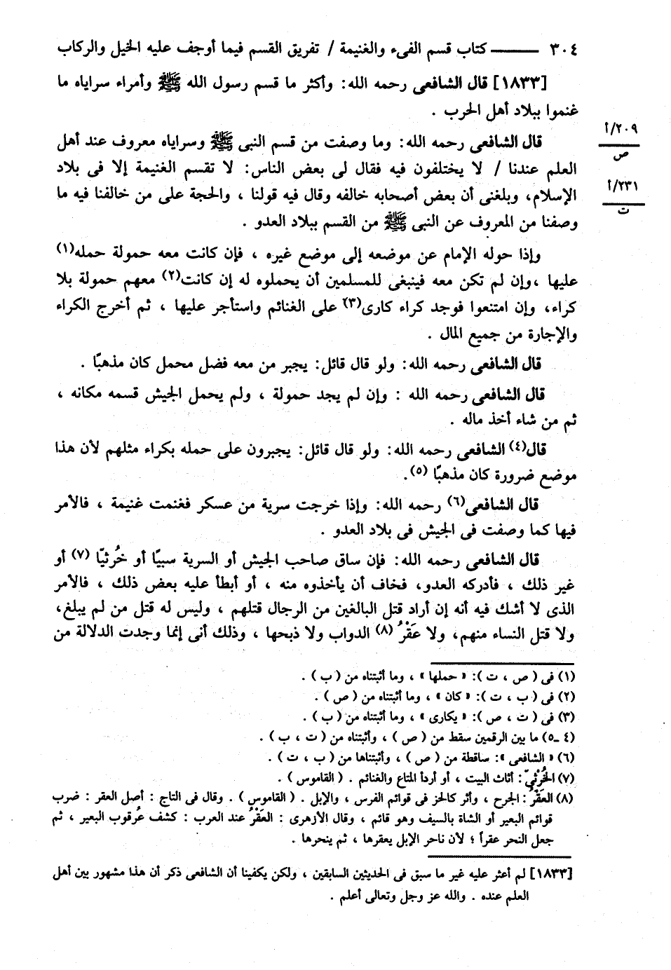 قَالَ الشَّافِعِيُّ : وَأَكْثَرُ مَا قَسَمَ رَسُولُ اللَّهِ - صلى الله عليه وسلم - وَأُمَرَاءُ سَرَايَاهُ مَا غَنِمُوا بِبِلاَدِ أَهْلِ الْحَرْبِ .