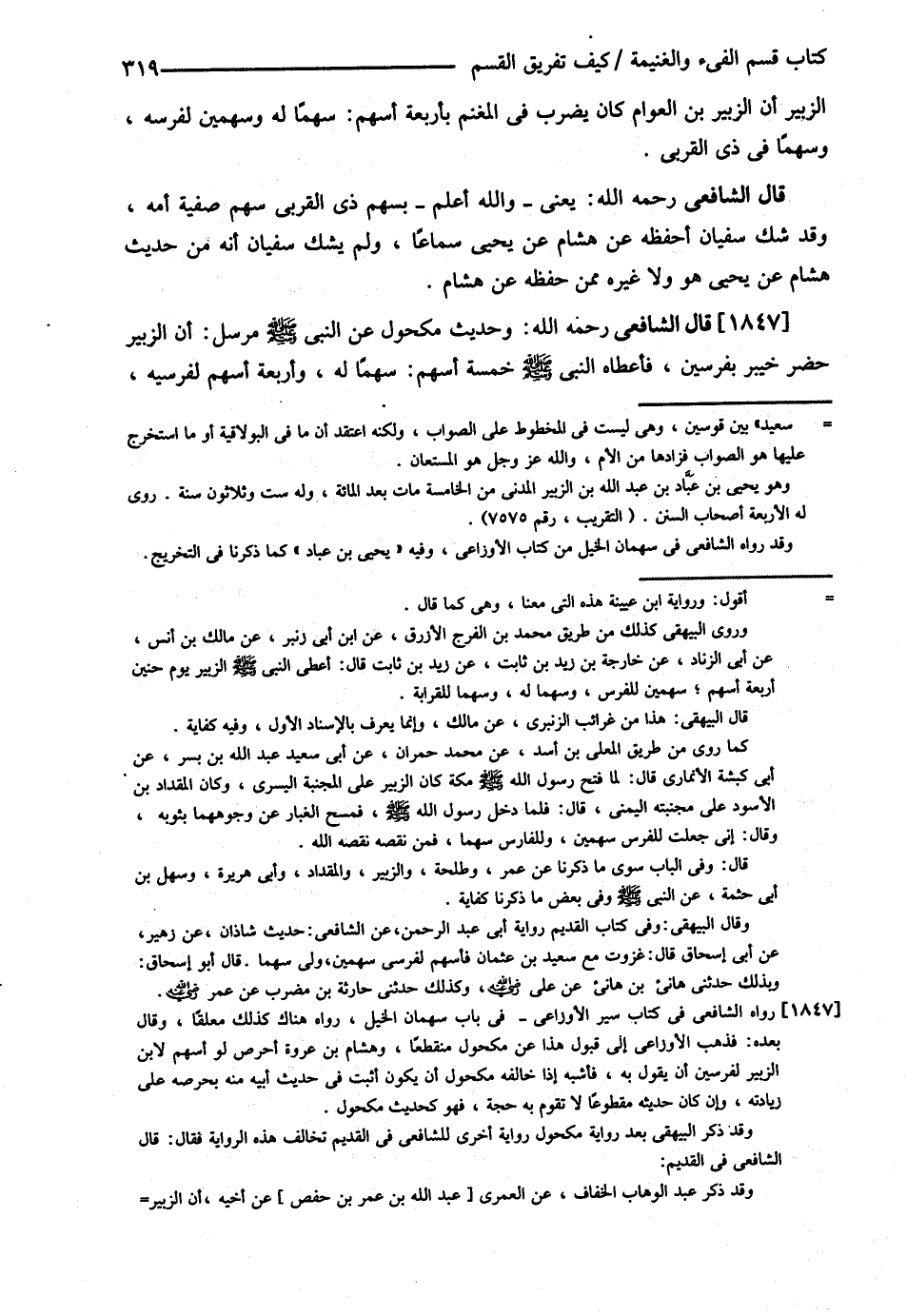 قَالَ الشَّافِعِيُّ : يَعْنِي وَاَللَّهُ تَعَالَى أَعْلَمُ بِسَهْمِ ذِي الْقُرْبَى سَهْمِ صَفِيَّةَ أُمِّهِ , وَقَدْ شَكَّ سُفْيَانُ أَحَفِظَهُ عَنْ هِشَامٍ عَنْ يَحْيَى سَمَاعًا , وَلَمْ يَشُكَّ سُفْيَانُ أَنَّهُ مِنْ حَدِيثِ هِشَامٍ عَنْ يَحْيَى هُوَ , وَلاَ غَيْرُهُ مِمَّنْ حَفِظَهُ عَنْ هِشَامٍ .