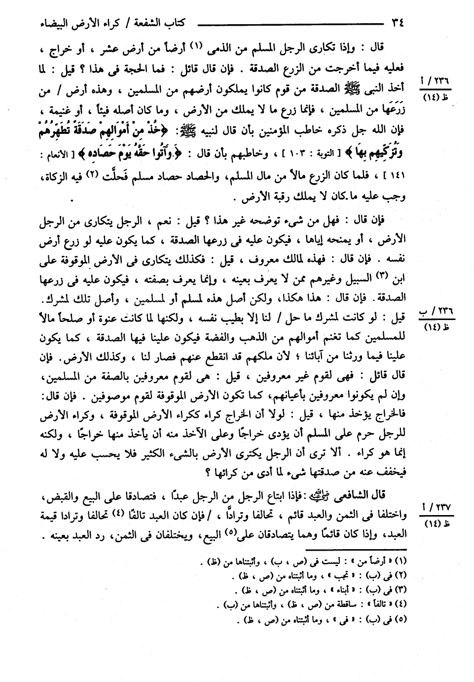 ( قَالَ ) وَإِذَا تَكَارَى الرَّجُلُ الْمُسْلِمُ مِنْ الذِّمِّيِّ أَرْضَ عُشْرٍ , أَوْ خَرَاجٍ فَعَلَيْهِ فِيمَا أَخْرَجَتْ مِنْ الزَّرْعِ الصَّدَقَةُ فَإِنْ قَالَ قَائِلٌ : فَمَا الْحُجَّةُ فِي هَذَا ؟ قِيلَ لِمَا أَخَذَ النَّبِيُّ - صلى الله عليه وسلم - الصَّدَقَةَ مِنْ قَوْم كَانُوا يَمْلِكُونَ أَرْضَهُمْ مِنْ الْمُسْلِمِينَ وَهَذِهِ أَرْضٌ مَنْ زَرَعَهَا مِنْ الْمُسْلِمِينَ فَإِنَّمَا زَرَعَ مَا لاَ يَمْلِكُ مِنْ الْأَرْضِ وَمَا كَانَ أَصْلُهُ فَيْئًا , أَوْ غَنِيمَةً , فَإِنَّ اللَّهَ جَلَّ ذِكْرُهُ خَاطَبَ الْمُؤْمِنِينَ بِأَنْ قَالَ لِنَبِيِّهِ - صلى الله عليه وسلم - { خُذْ مِنْ أَمْوَالِهِمْ صَدَقَةً تُطَهِّرُهُمْ وَتُزَكِّيهِمْ بِهَا } وَخَاطَبَهُمْ بِأَنْ قَالَ { وَآتُوا حَقَّهُ يَوْمَ حَصَادِهِ } فَلَمَّا كَانَ الزَّرْعُ مَالاً مِنْ مَالِ الْمُسْلِمِ وَالْحَصَادُ حَصَادَ مُسْلِمٍ تَجِبُ فِيهِ الزَّكَاةُ وَجَبَ عَلَيْهِ مَا كَانَ لاَ يَمْلِكُ رَقَبَةَ الْأَرْضِ , فَإِنْ قَالَ فَهَلْ مِنْ شَيْءٍ تُوَضِّحُهُ غَيْرَ هَذَا ؟ قِيلَ : نَعَمْ الرَّجُلُ يَتَكَارَى مِنْ الرَّجُلِ الْأَرْضَ أَوْ يَمْنَحُهُ إيَّاهَا فَيَكُونُ عَلَيْهِ فِي زَرْعِهَا الصَّدَقَةُ كَمَا يَكُونُ عَلَيْهِ لَوْ زَرَعَ أَرْضَ نَفْسِهِ , فَإِنْ قَالَ : فَهَذِهِ لِمَالِكٍ مَعْرُوفٍ , قِيلَ : فَكَذَلِكَ يَتَكَارَى فِي الْأَرْضِ الْمَوْقُوفَةِ عَلَى أَبْنَاءِ السَّبِيلِ وَغَيْرِهِمْ مِمَّنْ لاَ يُعْرَفُ بِعَيْنِهِ , وَإِنَّمَا يُعْرَفُ بِصِفَتِهِ فَيَكُونُ عَلَيْهِ فِي زَرْعِهَا الصَّدَقَةُ . فَإِنْ قَالَ : هَذَا هَكَذَا , وَلَكِنَّ أَصْلَ هَذِهِ لِمُسْلِمٍ , أَوْ لِمُسْلِمَيْنِ وَأَصْلَ تِلْكَ لِمُشْرِكٍ قِيلَ لَوْ كَانَتْ لِمُشْرِكٍ مَا حَلَّ لَنَا إلَّا بِطِيبِ نَفْسِهِ , وَلَكِنْ لَمَّا كَانَتْ عَنْوَةً , أَوْ صُلْحًا كَانَتْ مَالاً لِلْمُسْلِمِينَ كَمَا تُغْنَمُ أَمْوَالُهُمْ مِنْ الذَّهَبِ وَالْفِضَّةِ فَيَكُونُ عَلَيْنَا فِيهَا الصَّدَقَةُ كَمَا يَكُونُ عَلَيْنَا فِيمَا وَرِثْنَا مِنْ آبَائِنَا ; لِأَنَّ مِلْكَهُمْ قَدْ انْقَطَعَ عَنْهُمْ فَصَارَ لَنَا , وَكَذَلِكَ الْأَرْضُ فَإِنْ قَالَ قَائِلٌ فَهِيَ لِقَوْمٍ غَيْرِ مَعْرُوفِينَ , قِيلَ هِيَ لِقَوْمٍ مَعْرُوفِينَ بِالصِّفَةِ مِنْ الْمُسْلِمِينَ , وَإِنْ لَمْ يَكُونُوا مَعْرُوفِينَ أَعْيَانُهُمْ كَمَا تَكُونُ الْأَرْضُ الْمَوْقُوفَةُ لِقَوْمٍ مَوْصُوفِينَ , فَإِنْ قَالَ : فَالْخَرَاجُ يُؤْخَذُ مِنْهَا , قِيلَ : لَوْلاَ أَنَّ الْخَرَاجَ كِرَاءٌ كَكِرَاءِ الْأَرْضِ الْمَوْقُوفَةِ وَكِرَاءُ الْأَرْضِ لِلرَّجُلِ حَرَّمَ عَلَى الْمُسْلِمِ أَنْ يُؤَدِّيَ خَرَاجًا وَعَلَى الْآخِذِ مِنْهُ أَنْ يَأْخُذَ مِنْهَا خَرَاجًا , وَلَكِنَّهُ إنَّمَا هُوَ كِرَاءٌ , أَلاَ تَرَى أَنَّ الرَّجُلَ يَكْتَرِي الْأَرْضَ بِالشَّيْءِ الْكَثِيرِ فَلاَ يُحْسَبُ عَلَيْهِ , وَلاَ لَهُ فَيُخَفَّفُ عَنْهُ مِنْ صَدَقَتِهَا شَيْءٌ لِمَا أَدَّى مِنْ كِرَائِهَا