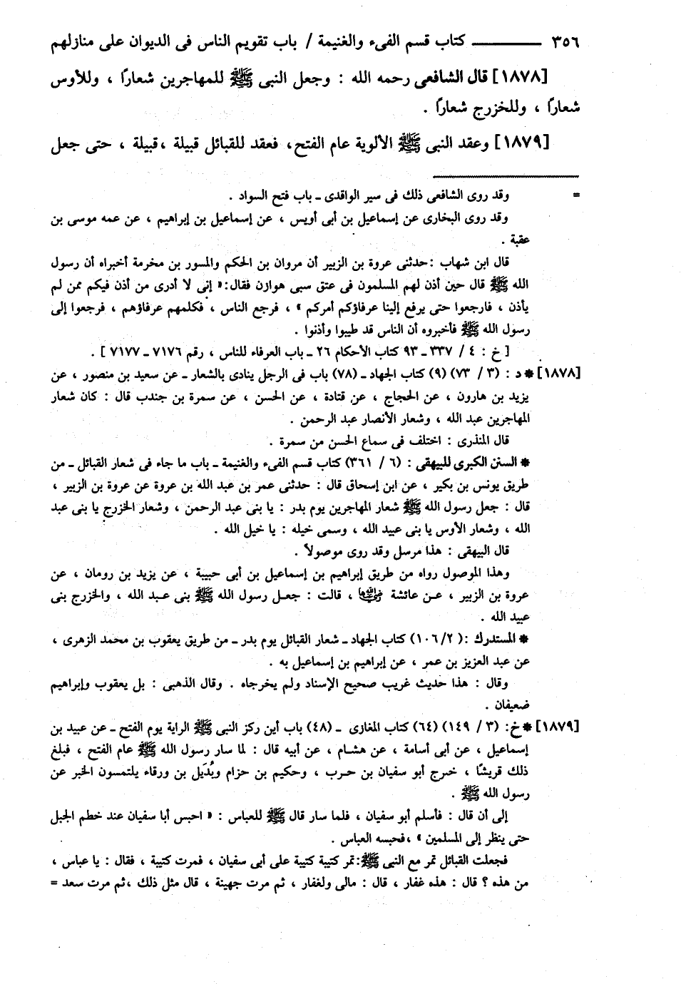 قَالَ الشَّافِعِيُّ : رحمه الله تعالى { وَجَعَلَ النَّبِيُّ - صلى الله عليه وسلم - لِلْمُهَاجِرِينَ شِعَارًا وَلِلْأَوْسِ شِعَارًا وَلِلْخَزْرَجِ شِعَارًا وَعَقَدَ النَّبِيُّ - صلى الله عليه وسلم - الْأَلْوِيَةَ عَامَ الْفَتْحِ فَعَقَدَ لِلْقَبَائِلِ قَبِيلَةً قَبِيلَةً حَتَّى جَعَلَ@