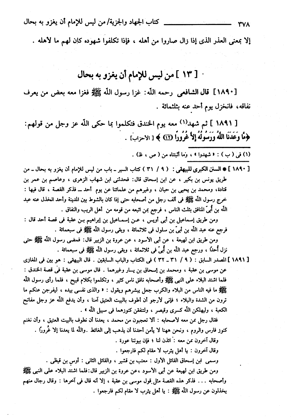 قَالَ الشَّافِعِيُّ : رحمه الله تعالى : غَزَا رَسُولُ اللَّهِ - صلى الله عليه وسلم - فَغَزَا مَعَهُ بَعْضُ مَنْ يَعْرِفُ نِفَاقَهُ فَانْخَزَلَ يَوْمَ أُحُدٍ عَنْهُ بِثَلَثِمِائَةٍ ثُمَّ شَهِدُوا مَعَهُ يَوْمَ الْخَنْدَقِ فَتَكَلَّمُوا بِمَا حَكَى اللَّهُ عَزَّ وَجَلَّ مِنْ قَوْلِهِمْ { وَمَا وَعَدَنَا اللَّهُ وَرَسُولُهُ إلَّا غُرُورًا }@