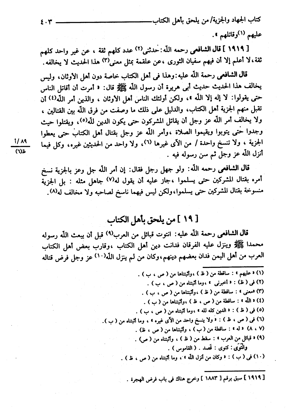 قَالَ الشَّافِعِيُّ: انْتَوَتْ قَبَائِلُ مِنْ الْعَرَبِ قَبْلَ أَنْ يَبْعَثَ اللَّهُ رَسُولَهُ مُحَمَّدًا - صلى الله عليه وسلم - وَيُنَزِّلَ عَلَيْهِ الْفُرْقَانَ فَدَانَتْ دِينَ أَهْلِ الْكِتَابِ وَقَارَبَ بَعْضُ أَهْلِ الْكِتَابِ الْعَرَبَ مِنْ أَهْلِ الْيَمَنِ فَدَانَ بَعْضُهُمْ دِينَهُمْ وَكَانَ مَنْ أَنْزَلَ اللَّهُ عَزَّ وَجَلَّ فَرْضَ قِتَالِهِ@