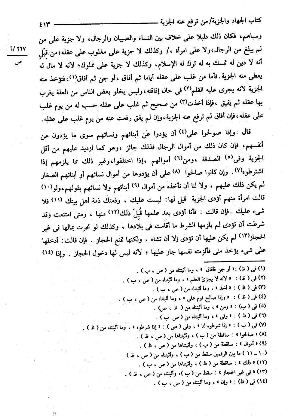 وَسَبَاهُمْ } فَكَانَ ذَلِكَ دَلِيلاً عَلَى خِلاَفٍ بَيْنَ النِّسَاءِ وَالصِّبْيَانِ وَالرِّجَالِ , وَلاَ جِزْيَةَ عَلَى مَنْ لَمْ يَبْلُغْ مِنْ الرِّجَالِ , وَلاَ عَلَى امْرَأَةٍ , وَكَذَلِكَ لاَ جِزْيَةَ عَلَى مَغْلُوبٍ عَلَى عَقْلِهِ مِنْ قِبَلِ أَنَّهُ لاَ دِينَ لَهُ تَمَسَّكَ بِهِ تَرَكَ لَهُ الْإِسْلاَمُ , وَكَذَلِكَ لاَ جِزْيَةَ عَلَى مَمْلُوكٍ ; لِأَنَّهُ لاَ مَالَ لَهُ يُعْطِي مِنْهُ الْجِزْيَةَ فَأَمَّا مَنْ غَلَبَ عَلَى عَقْلِهِ أَيَّامًا ثُمَّ أَفَاقَ , أَوْ جُنَّ فَتُؤْخَذُ مِنْهُ الْجِزْيَةُ ; لِأَنَّهُ يَجْرِي عَلَيْهِ الْقَلَمُ فِي حَالِ إفَاقَتِهِ وَلَيْسَ يَخْلُو بَعْضُ النَّاسِ مِنْ الْعِلَّةِ يَغْرُبُ بِهَا عَقْلُهُ ثُمَّ يُفِيقُ , فَإِذَا أَخَذْت مِنْ صَحِيحٍ ثُمَّ غَلَبَ عَقْلُهُ حَسَبَ لَهُ مِنْ يَوْمِ غَلَبَ عَلَى عَقْلِهِ فَإِنْ أَفَاقَ لَمْ تُرْفَعْ عَنْهُ الْجِزْيَةُ , وَإِنْ لَمْ يُفِقْ رُفِعَتْ عَنْهُ مِنْ يَوْمِ غَلَبَ عَلَى عَقْلِهِ قَالَ : وَإِذَا صُولِحُوا عَلَى أَنْ يُؤَدُّوا عَنْ أَبْنَائِهِمْ وَنِسَائِهِمْ سِوَى مَا يُؤَدُّونَ عَنْ أَنْفُسِهِمْ فَإِنْ كَانَ ذَلِكَ مِنْ أَمْوَالِ الرِّجَالِ فَذَلِكَ جَائِزٌ , وَهُوَ كَمَا اُزْدِيدَ عَلَيْهِمْ مِنْ أَقَلِّ الْجِزْيَةِ وَمِنْ الصَّدَقَةِ وَمِنْ أَمْوَالِهِمْ إذَا اخْتَلَفُوا وَغَيْرُ ذَلِكَ مِمَّا يَلْزَمُهُمْ إذَا شَرَطُوهُ لَنَا , وَإِنْ كَانُوا عَلَى أَنْ يُؤَدُّوهَا مِنْ أَمْوَالِ نِسَائِهِمْ , أَوْ أَبْنَائِهِمْ الصِّغَارِ لَمْ يَكُنْ ذَلِكَ عَلَيْهِمْ , وَلاَ لَنَا أَنْ نَأْخُذَهُ مِنْ أَبْنَائِهِمْ , وَلاَ نِسَائِهِمْ بِقَوْلِهِمْ فَلاَ شَيْئًا عَلَيْك فَإِنْ قَالَتْ : فَإِنْ أُؤَدِّي بَعْدَ عِلْمِهَا قَبْلَ ذَلِكَ مِنْهَا وَمَتَى امْتَنَعْت , وَقَدْ شَرَطَتْ أَنْ تُؤَدِّيَ لَمْ يَلْزَمْهَا الشَّرْطُ مَا أَقَامَتْ فِي بِلاَدِهَا , وَكَذَلِكَ لَوْ تَجَرَتْ بِمَالِهَا لَمْ يَكُنْ عَلَيْهَا أَنْ تُؤَدِّيَ إلَّا أَنْ تَشَاءَ , وَلَكِنَّهَا تُمْنَعُ الْحِجَازَ فَإِنْ قَالَتْ أَدْخُلُهَا عَلَى شَيْءٍ يُؤْخَذُ مِنِّي فَأَلْزَمَتْهُ نَفْسَهَا جَازَ عَلَيْهَا ; لِأَنَّهُ لَيْسَ لَهَا دُخُولُ الْحِجَازِ . وَإِذَا @