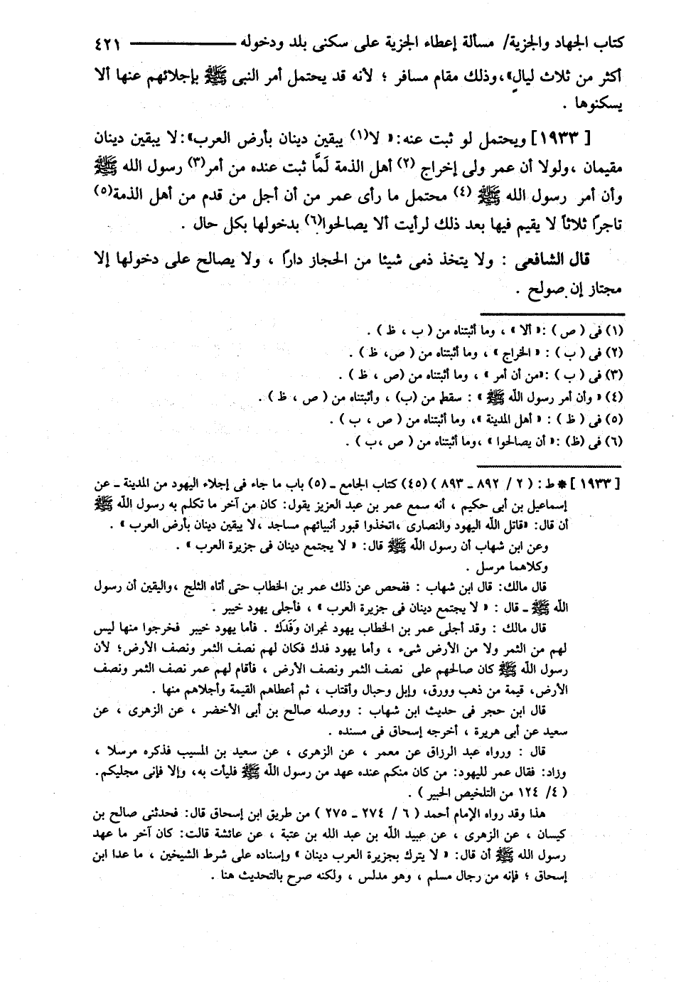 أَكْثَرَ مِنْ ثَلاَثِ لَيَالٍ وَذَلِكَ مُقَامُ مُسَافِرٍ ; لِأَنَّهُ قَدْ يَحْتَمِلُ أَمْرُ النَّبِيِّ - صلى الله عليه وسلم - بِإِجْلاَئِهِمْ عَنْهَا أَنْ لاَ يَسْكُنُوهَا وَيَحْتَمِلُ لَوْ ثَبَتَ عَنْهُ { لاَ يَبْقَيَنَّ دِينَانِ بِأَرْضِ الْعَرَبِ } لاَ يَبْقَيَنَّ دِينَانِ مُقِيمَانِ , وَلَوْلاَ أَنَّ عُمَرَ وَلَّى الْخَرَاجَ أَهْلَ الذِّمَّةِ لِمَا ثَبَتَ عِنْدَهُ مِنْ أَنَّ أَمْرَ رَسُولِ اللَّهِ - صلى الله عليه وسلم - مُحْتَمِلٌ مَا رَأَى عُمَرُ مِنْ أَنَّ أَجَلَ مَنْ قَدِمَ مِنْ أَهْلِ الذِّمَّةِ تَاجِرًا ثَلاَثٌ لاَ يُقِيمُ فِيهَا بَعْدَ ذَلِكَ لَرَأَيْت أَنْ لاَ يُصَالَحُوا بِدُخُولِهَا بِكُلِّ حَالٍ .