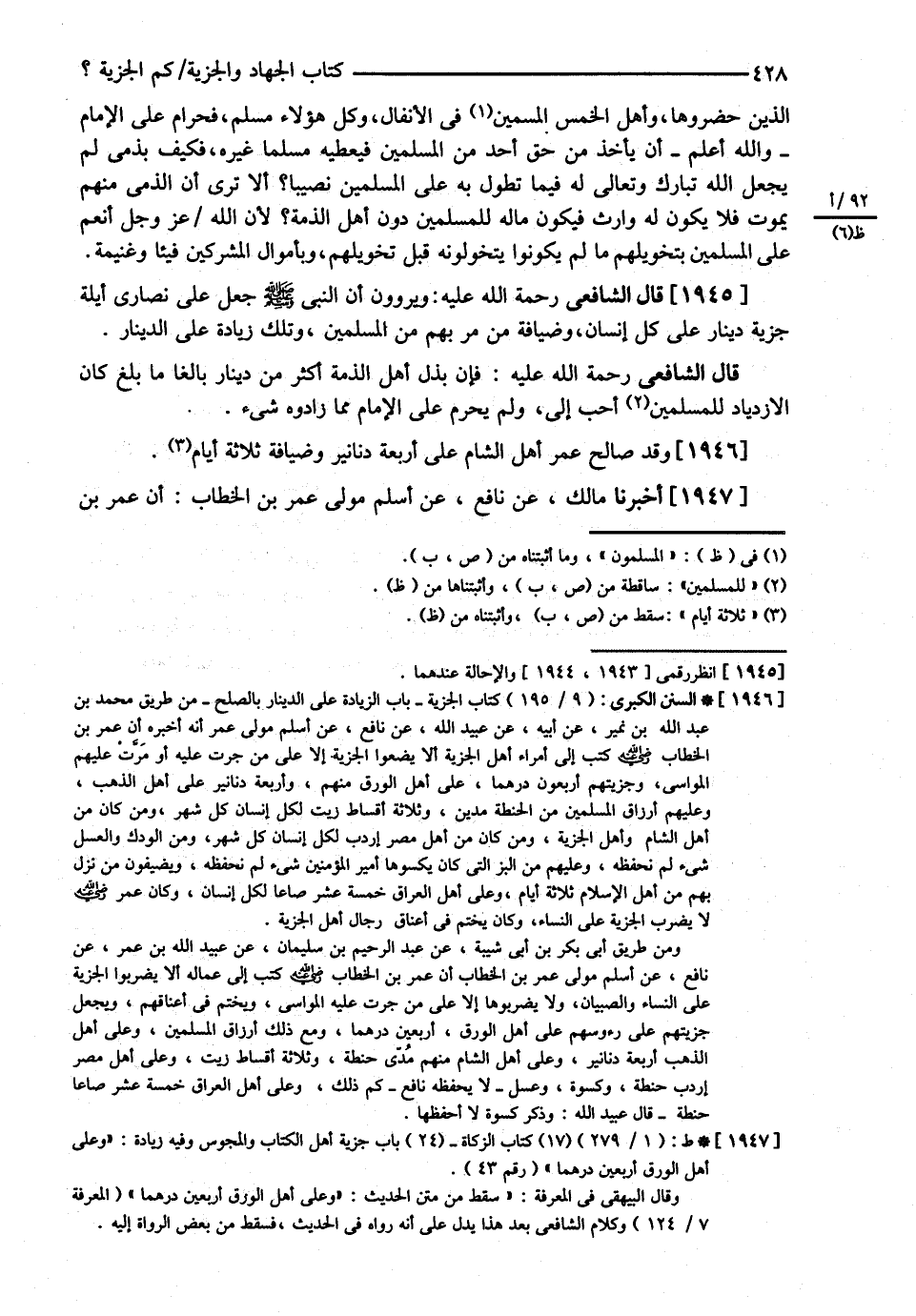 الَّذِينَ حَضَرُوهَا , وَأَهْلُ الْخُمُسِ الْمُسْلِمِينَ فِي الْأَنْفَالِ وَكُلُّ هَؤُلاَءِ مُسْلِمٌ فَحَرَامٌ عَلَى الْإِمَامِ وَاَللَّهُ تَعَالَى أَعْلَمُ أَنْ يَأْخُذَ مِنْ حَقِّ أَحَدٍ مِنْ الْمُسْلِمِينَ فَيُعْطِيهِ مُسْلِمًا غَيْرَهُ فَكَيْفَ بِذِمِّيٍّ لَمْ يَجْعَلْ اللَّهَ تَبَارَكَ وَتَعَالَى فِيمَا تَطَوَّلَ بِهِ عَلَى الْمُسْلِمِينَ نَصِيبًا ؟ أَلاَ تَرَى أَنَّ الذِّمِّيَّ مِنْهُمْ يَمُوتُ فَلاَ يَكُونُ لَهُ وَارِثٌ فَيَكُونُ مَالُهُ لِلْمُسْلِمِينَ دُونَ أَهْلِ الذِّمَّةِ ; لِأَنَّ اللَّهَ عَزَّ وَجَلَّ أَنْعَمَ عَلَى الْمُسْلِمِينَ بِتَخْوِيلِهِمْ مَا لَمْ يَكُونُوا يَتَخَوَّلُونَهُ قَبْلَ تَخْوِيلِهِمْ وَبِأَمْوَالِ الْمُشْرِكِينَ فَيْئًا وَغَنِيمَةً .