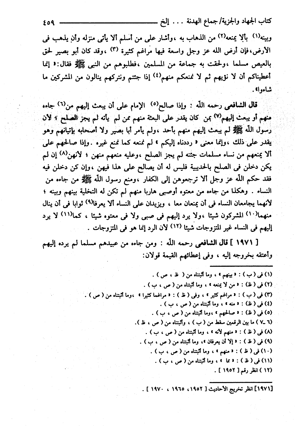 قَالَ الشَّافِعِيُّ : رحمه الله وَإِذَا صَالَحَ الْإِمَامُ عَلَى أَنْ يَبْعَثَ إلَيْهِمْ بِمَنْ كَانَ يَقْدِرُ عَلَى بَعْثِهِ مِنْهُمْ مِمَّنْ لَمْ يَأْتِهِ لَمْ يَجُزْ الصُّلْحُ ; لِأَنَّ رَسُولَ اللَّهِ - صلى الله عليه وسلم - لَمْ يَبْعَثْ إلَيْهِمْ مِنْهُمْ بِأَحَدٍ , وَلَمْ يَأْمُرْ أَبَا بَصِيرٍ , وَلاَ أَصْحَابَهُ بِإِتْيَانِهِمْ , وَهُوَ يَقْدِرُ عَلَى ذَلِكَ , وَإِنَّمَا مَعْنَى رَدَدْنَاهُ إلَيْكُمْ لَمْ نَمْنَعْهُ كَمَا نَمْنَعُ غَيْرَهُ , وَإِذَا صَالَحَهُمْ عَلَى أَنْ لاَ يَمْنَعَهُمْ مِنْ نِسَاءٍ مُسْلِمَاتٍ جِئْنَهُ لَمْ يَجُزْ الصُّلْحُ وَعَلَيْهِ مَنْعُهُمْ مِنْهُنَّ ; لِأَنَّهُنَّ إنْ لَمْ يَكُنَّ دَخَلْنَ فِي الصُّلْحِ بِالْحُدَيْبِيَةِ فَلَيْسَ لَهُ أَنْ يُصَالِحَ عَلَى هَذَا فِيهِنَّ , وَإِنْ كُنَّ دَخَلْنَ فِيهِ , فَقَدْ حَكَمَ اللَّهُ عَزَّ وَجَلَّ أَنْ لاَ تَرْجِعُوهُنَّ إلَى الْكُفَّارِ وَمَنَعَ رَسُولُ اللَّهِ - صلى الله عليه وسلم - مَنْ جَاءَهُ مِنْ النِّسَاءِ وَهَكَذَا مَنْ جَاءَهُ مِنْ مَعْتُوهٍ , أَوْ صَبِيٍّ هَارِبًا مِنْهُمْ لَمْ تَكُنْ لَهُ التَّخْلِيَةُ بَيْنَهُ وَبَيْنَهُمْ ; لِأَنَّهُمَا يُجَامِعَانِ النِّسَاءَ فِي أَنْ لاَ يُمْنَعَا مَعًا وَيَزِيدَانِ عَلَى النِّسَاءِ أَنْ لاَ يَعْرِفَا ثَوَابًا فِي أَنْ يَنَالَ مِنْهُمَا الْمُشْرِكُونَ شَيْئًا , وَلاَ يَرُدُّ إلَيْهِمْ فِي صَبِيٍّ , وَلاَ فِي مَعْتُوهٍ شَيْئًا كَمَا لاَ يَرُدُّ إلَيْهِمْ فِي النِّسَاءِ غَيْرَ الْمُتَزَوِّجَاتِ شَيْئًا ; لِأَنَّ الرَّدَّ إنَّمَا هُوَ فِي الْمُتَزَوِّجَاتِ .