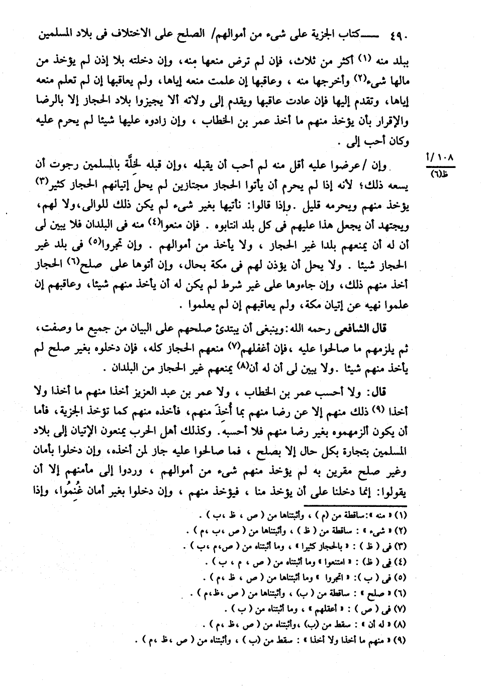 قَالَ الشَّافِعِيُّ : رحمه الله تعالى : وَيَنْبَغِي أَنْ يَبْتَدِئَ صُلْحَهُمْ عَلَى الْبَيَانِ مِنْ جَمِيعِ مَا وَصَفْت ثُمَّ يُلْزِمَهُمْ مَا صَالَحُوا عَلَيْهِ فَإِنْ أَغْفَلَهُمْ مَنَعَهُمْ الْحِجَازَ كُلَّهُ فَإِنْ دَخَلُوهُ بِغَيْرِ صُلْحٍ لَمْ يَأْخُذْ مِنْهُمْ شَيْئًا وَلاَ يَبِينُ لِي أَنْ يَمْنَعَهُمْ غَيْرَ الْحِجَازِ مِنْ الْبُلْدَانِ قَالَ وَلاَ أَحْسَبُ عُمَرَ بْنَ الْخَطَّابِ وَلاَ عُمَرَ بْنَ عَبْدِ الْعَزِيزِ أَخَذَ ذَلِكَ مِنْهُمْ إلَّا عَنْ رِضًا مِنْهُمْ بِمَا أَخَذَ مِنْهُمْ فَأَخَذَهُ مِنْهُمْ كَمَا تُؤْخَذُ الْجِزْيَةُ فَإِمَّا أَنْ يَكُونَ أَلْزَمَهُمُوهُ بِغَيْرِ رِضًا مِنْهُمْ فَلاَ أَحْسَبُهُ وَكَذَلِكَ أَهْلُ الْحَرْبِ يَمْنَعُونَ الْإِتْيَانَ إلَى بِلاَدِ الْمُسْلِمِينَ بِتِجَارَةٍ بِكُلِّ حَالٍ إلَّا بِصُلْحٍ فَمَا صَالَحُوا عَلَيْهِ جَازَ لِمَنْ أَخَذَهُ وَإِنْ دَخَلُوا بِأَمَانٍ وَغَيْرِ صُلْحٍ مُقِرِّينَ بِهِ لَمْ يُؤْخَذْ مِنْهُمْ شَيْءٌ مِنْ أَمْوَالِهِمْ وَرُدُّوا إلَى مَأْمَنِهِمْ إلَّا أَنْ يَقُولُوا إنَّمَا دَخَلْنَا عَلَى أَنْ يُؤْخَذَ مِنَّا , فَيُؤْخَذُ مِنْهُمْ وَإِنْ دَخَلُوا بِغَيْرِ أَمَانٍ غَنِمُوا وَإِذَا @