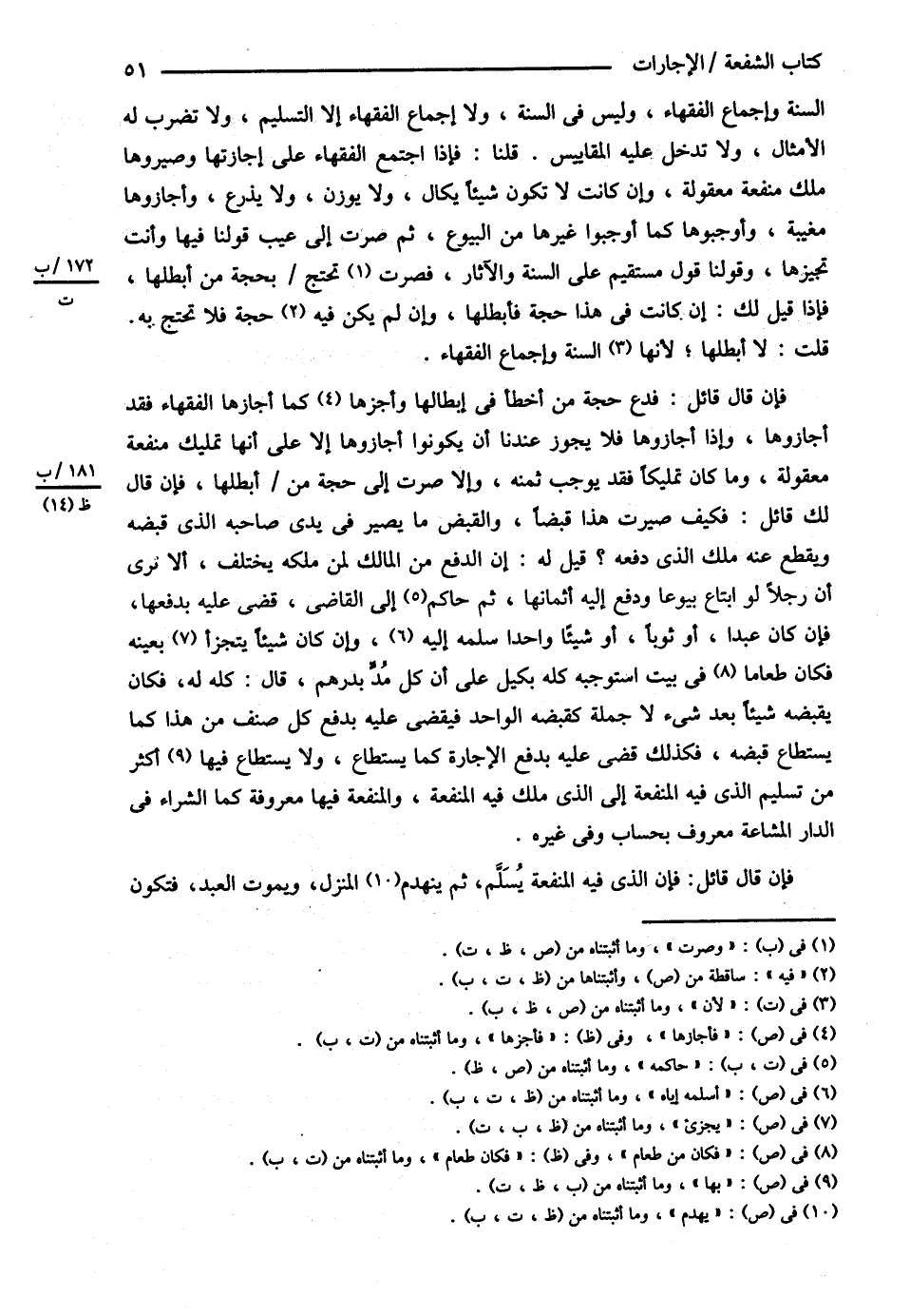 السُّنَّةَ وَإِجْمَاعَ الْفُقَهَاءِ وَلَيْسَ فِي السُّنَّةِ وَلاَ إجْمَاعِ الْفُقَهَاءِ إلَّا التَّسْلِيمُ , وَلاَ تُضْرَبُ لَهُ الْأَمْثَالُ , وَلاَ تَدْخُلُ عَلَيْهِ الْمَقَايِيسُ قُلْنَا : فَإِذَا اجْتَمَعَ الْفُقَهَاءُ عَلَى إجَازَتِهَا وَصَيَّرُوهَا مِلْكَ مَنْفَعَةٍ مَعْقُولَةٍ , وَإِنْ كَانَتْ لاَ تَكُونُ شَيْئًا يُكَالُ , وَلاَ يُوزَنُ , وَلاَ يُذْرَعُ وَأَجَازَهَا مَغِيبَةً وَأَوْجَبُوهَا كَمَا أَوْجَبُوا غَيْرَهَا مِنْ الْبُيُوعِ ثُمَّ صِرْت إلَى عَيْبِ قَوْلنَا فِيهَا وَأَنْتَ تُجِيزُهَا . وَقَوْلُنَا قَوْلٌ مُسْتَقِيمٌ عَلَى السُّنَّةِ وَالْآثَارِ وَصِرْت بِحُجَّةِ مَنْ أَبْطَلَهَا , فَإِذَا قِيلَ لَك : إنْ كَانَتْ فِي هَذَا حُجَّةٌ فَأَبْطِلْهَا , وَإِنْ لَمْ يَكُنْ فِيهِ حُجَّةٌ فَلاَ تَحْتَجَّ بِهِ قُلْت : لاَ أُبْطِلُهَا ; لِأَنَّهَا السُّنَّةُ وَإِجْمَاعُ الْفُقَهَاءِ , فَإِنْ قَالَ قَائِلٌ : فَدَعْ حُجَّةَ مَنْ أَخْطَأَ فِي إبْطَالِهَا وَأَجِزْهَا كَمَا أَجَازَهَا الْفُقَهَاءُ , فَقَدْ أَجَازُوهَا , وَإِذَا أَجَازُوهَا فَلاَ يَجُوزُ عِنْدَنَا أَنْ يَكُونُوا أَجَازُوهَا إلَّا عَلَى أَنَّهَا تَمْلِيكُ مَنْفَعَةٍ مَعْقُولَةٍ وَمَا كَانَ تَمْلِيكًا , فَقَدْ يُوجِبُ ثَمَنَهُ وَإِلَّا صِرْت إلَى حُجَّةِ مَنْ أَبْطَلَهَا . فَإِنْ قَالَ لَك قَائِلٌ : فَكَيْفَ صَيَّرَتْ هَذَا قَبْضًا وَالْقَبْضُ مَا يَصِيرُ فِي يَدَيْ صَاحِبِهِ الَّذِي قَبَضَهُ وَيَقْطَعُ عَنْهُ مِلْكَ الَّذِي دَفَعَهُ ؟ قِيلَ لَهُ : إنَّ الدَّفْعَ مِنْ الْمَالِكِ لِمَنْ مَلَكَهُ يَخْتَلِفُ , أَلاَ تَرَى أَنَّ رَجُلاً لَوْ ابْتَاعَ بُيُوعًا وَدَفَعَ إلَيْهِ أَثْمَانَهَا ثُمَّ حَاكَمَهُ إلَى الْقَاضِي قَضَى عَلَيْهِ بِدَفْعِهَا فَإِنْ كَانَ عَبْدًا , أَوْ ثَوْبًا , أَوْ شَيْئًا وَاحِدًا سَلَّمَهُ إلَيْهِ , وَإِنْ كَانَ شَيْئًا يَتَجَزَّأُ بِعَيْنِهِ فَكَانَ طَعَامًا فِي بَيْتٍ اسْتَوْجَبَهُ كُلَّهُ بِكَيْلٍ عَلَى أَنَّ كُلَّ مُدٍّ بِدِرْهَمٍ قَالَ كُلُّهُ لَهُ فَكَانَ يَقْبِضُهُ شَيْئًا بَعْدَ شَيْءٍ لاَ جُمْلَةً كَقَبْضِهِ الْوَاحِدَةَ فَيَقْضِي عَلَيْهِ بِدَفْعِ كُلِّ صِنْفٍ مِنْ هَذَا كَمَا يُسْتَطَاعُ قَبْضَهُ فَكَذَلِكَ قَضَى عَلَيْهِ بِدَفْعِ الْإِجَارَةِ كَمَا يُسْتَطَاعُ , وَلاَ يُسْتَطَاعُ فِيهَا أَكْثَرُ مِنْ تَسْلِيمِ الَّذِي فِيهِ الْمَنْفَعَةُ إلَى الَّذِي مُلِكَ فِيهِ الْمَنْفَعَةُ , وَالْمَنْفَعَةُ فِيهَا مَعْرُوفَةٌ كَمَا الشِّرَاءُ فِي الدَّارِ الْمُشَاعَةِ مَعْرُوفٌ بِحِسَابٍ وَفِي غَيْرِهِ . فَإِنْ قَالَ قَائِلٌ : فَإِنَّ الَّذِي فِيهِ الْمَنْفَعَةُ بِسَلَمٍ ثُمَّ يَنْهَدِمُ الْمَنْزِلُ , أَوْ يَمُوتُ الْعَبْدُ فَتَكُونُ@