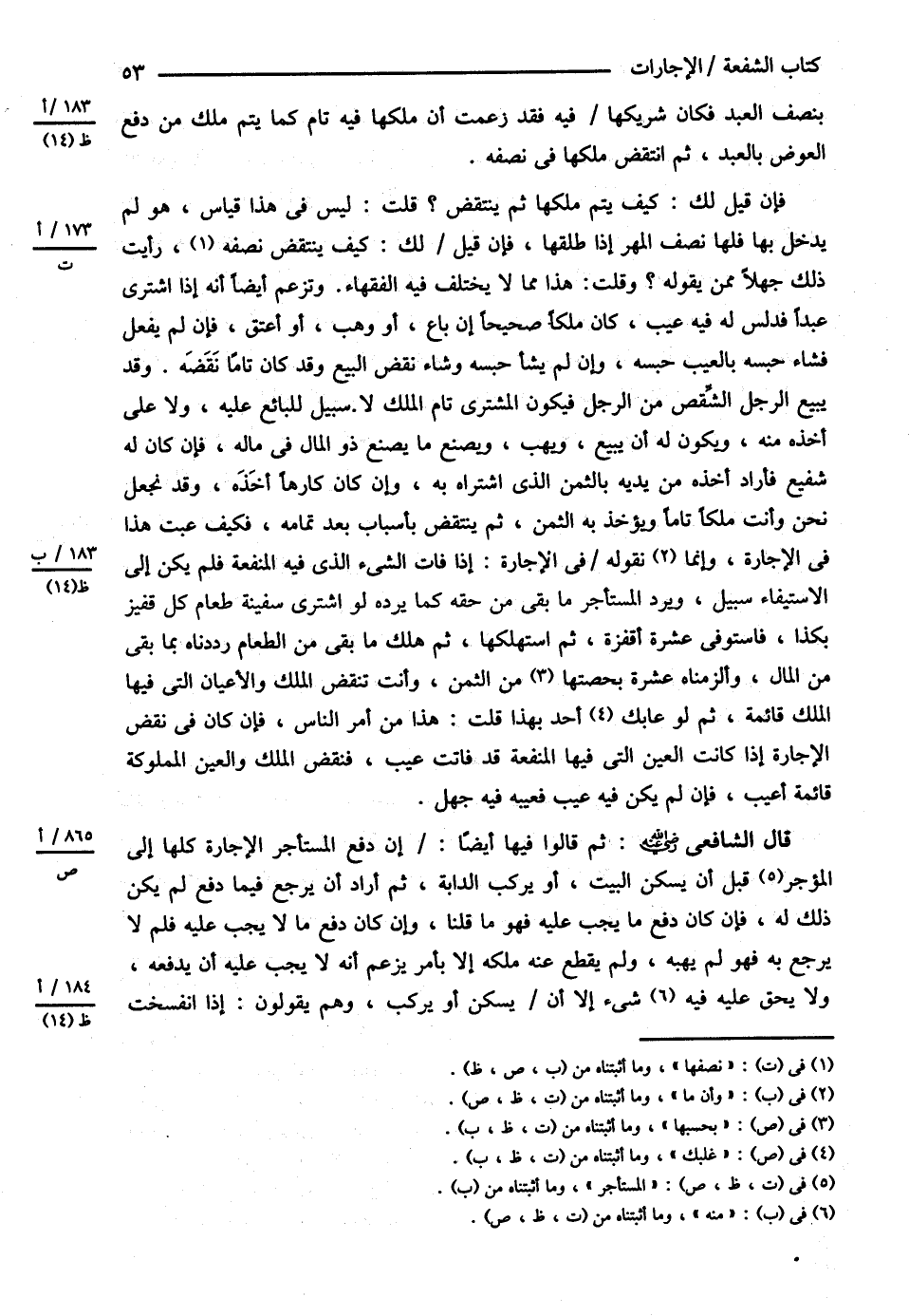 بِنِصْفِ الْعَبْدِ فَكَانَ شَرِيكُهَا فِيهِ , فَقَدْ زَعَمْت أَنَّ مِلْكَهَا فِيهِ تَامٌّ كَمَا يَتِمُّ مِلْكُ مَنْ دَفَعَ الْعِوَضَ بِالْعَبْدِ ثُمَّ انْتَقَضَ مِلْكُهَا فِي نِصْفِهِ فَإِنْ قِيلَ لَك كَيْفَ يَتِمُّ مِلْكُهَا ثُمَّ يُنْتَقَضُ ؟ قُلْت لَيْسَ فِي هَذَا قِيَاسٌ هُوَ لَمْ يَدْخُلْ بِهَا فَلَهَا نِصْفُ الْمَهْرِ إذَا طَلَّقَهَا فَإِنْ قِيلَ لَك كَيْفَ يُنْتَقَضُ نِصْفُهُ رَأَيْت ذَلِكَ جَهْلاً مِمَّنْ يَقُولُهُ ؟ وَقُلْت : هَذَا مِمَّا لاَ يَخْتَلِفُ فِيهِ الْفُقَهَاءُ وَتَزْعُمُ أَيْضًا أَنَّهُ إذَا اشْتَرَى عَبْدًا فَدَلَّسَ لَهُ فِيهِ عَيْبٌ كَانَ مِلْكًا صَحِيحًا إنْ بَاعَ أَوْ وَهَبَ , أَوْ أَعْتَقَ فَإِنْ لَمْ يَفْعَلْ فَشَاءَ حَبَسَهُ بِالْعَيْبِ حَبَسَهُ , وَإِنْ لَمْ يَشَأْ حَبَسَهُ وَشَاءَ نَقْضَ الْبَيْعِ , وَقَدْ كَانَ تَامًّا نَقَضَهُ , وَقَدْ يَبِيعُ الرَّجُلُ الشِّقْصَ مِنْ الرَّجُلِ فَيَكُونُ الْمُشْتَرِي تَامَّ الْمِلْكِ لاَ سَبِيلَ لِلْبَائِعِ عَلَيْهِ , وَلاَ عَلَى أَخْذِهِ مِنْهُ وَيَكُونُ لَهُ أَنْ يَبِيعَ وَيَهَبَ وَيَصْنَعَ مَا يَصْنَعُ ذُو الْمَالِ فِي مَالِهِ فَإِنْ كَانَ لَهُ شَفِيعٌ فَأَرَادَ أَخْذَهُ مِنْ يَدَيْهِ بِالثَّمَنِ الَّذِي اشْتَرَاهُ بِهِ , وَإِنْ كَانَ كَارِهًا أَخْذَهُ , وَقَدْ نَجْعَلُ نَحْنُ وَأَنْتَ مِلْكًا تَامًّا وَيُؤْخَذُ بِهِ الثَّمَنُ ثُمَّ يُنْتَقَضُ بِأَسْبَابٍ بَعْدَ تَمَامِهِ فَكَيْفَ عِبْت هَذَا فِي الْإِجَارَةِ وَأَنَّ مَا نَقُولُهُ فِي الْإِجَارَةِ إذَا فَاتَ الشَّيْءُ فِيهِ الَّذِي فِيهِ الْمَنْفَعَةُ فَلَمْ يَكُنْ إلَى الِاسْتِيفَاءِ سَبِيلٌ وَيَرُدُّ الْمُسْتَأْجِرُ مَا بَقِيَ مِنْ حَقِّهِ كَمَا يَرُدُّهُ لَوْ اشْتَرَى سَفِينَةَ طَعَامٍ كُلُّ قَفِيزٍ بِكَذَا فَاسْتَوْفَى عَشْرَةَ أَقْفِزَةٍ ثُمَّ اسْتَهْلَكَهَا ثُمَّ هَلَكَ مَا بَقِيَ مِنْ الطَّعَامِ رَدَدْنَاهُ بِمَا بَقِيَ مِنْ الْمَالِ وَأَلْزَمْنَاهُ عَشْرَةً بِحِصَّتِهَا مِنْ الثَّمَنِ وَأَنْتَ تَنْقُضُ الْمِلْكَ وَالْأَعْيَانَ الَّتِي فِيهَا الْمِلْكُ قَائِمَةٌ ثُمَّ لَوْ عَابَك أَحَدٌ بِهَذَا قُلْت : هَذَا مِنْ أَمْرِ النَّاسِ فَإِنْ كَانَ فِي نَقْضِ الْإِجَارَةِ إذَا كَانَتْ الْعَيْنُ الَّتِي فِيهَا الْمَنْفَعَةُ قَدْ فَاتَتْ عَيْبٌ فَنَقَضَ الْمِلْكَ وَالْعَيْنَ الْمَمْلُوكَةَ قَائِمَةٌ أَعَيْبُ فَإِنْ لَمْ يَكُنْ فِيهِ عَيْبٌ فَعَيْبُهُ فِيهِ جَهْلٍ .