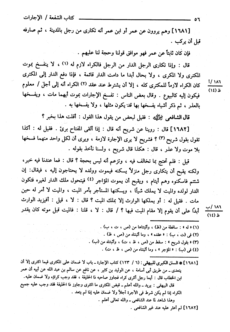 وَهُمْ يَرْوُونَ عَنْ عُمَرَ , أَوْ ابْنِ عُمَرَ أَنَّهُ تَكَارَى مِنْ رَجُلٍ بِالْمَدِينَةِ ثُمَّ صَارَفَهُ قَبْلَ أَنْ يَرْكَبَ فَإِنْ كَانَ ثَابِتًا عَنْ عُمَرَ فَهُوَ مُوَافِقٌ قَوْلَنَا وَحُجَّةٌ لَنَا عَلَيْهِمْ