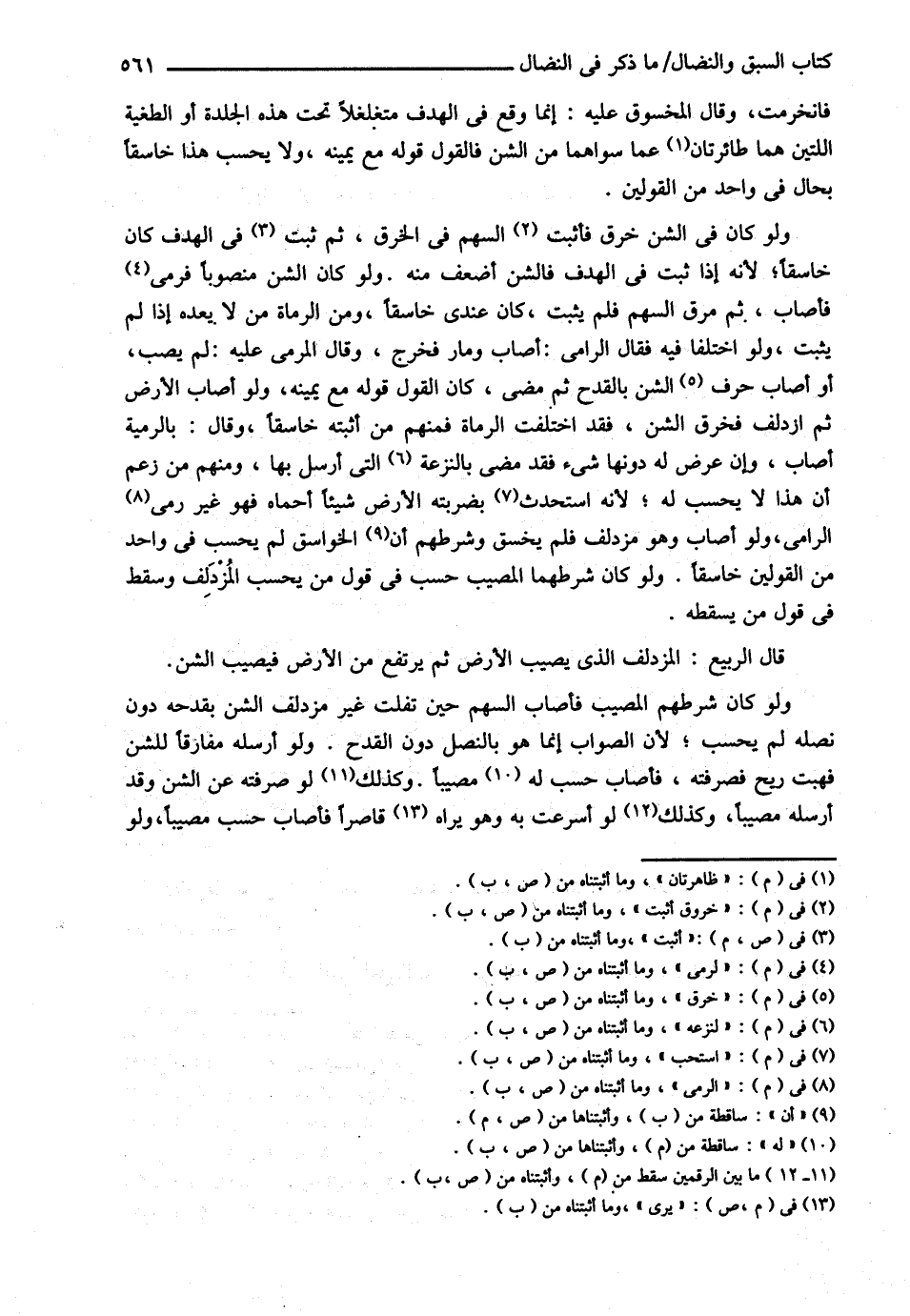 وَلَوْ أَصَابَ الْأَرْضَ ثُمَّ ازْدَلَفَ فَخَرَقَ الشَّنَّ فَقَدْ اخْتَلَفَتْ الرُّمَاةُ فَمِنْهُمْ مِنْ أَنْبَتَهُ خَاسِقًا وَقَالَ بِالرَّمْيَةِ أَصَابَ وَإِنْ عَرَضَ لَهُ دُونَهَا شَيْءٌ فَقَدْ مَضَى بِالنَّزْعَةِ الَّتِي أَرْسَلَ بِهَا , وَمِنْهُمْ مَنْ زَعَمَ أَنَّ هَذَا لاَ يُحْسَبُ لَهُ لِأَنَّهُ اسْتَحْدَثَ بِضَرْبَتِهِ الْأَرْضَ شَيْئًا أَحْمَاهُ فَهُوَ غَيْرُ رَمْيِ الرَّامِي وَلَوْ أَصَابَ وَهُوَ مُزْدَلِفٌ فَلَمْ يَخْسِقْ وَشَرْطُهُمْ الخواسق لَمْ يُحْسَبْ فِي وَاحِدٍ مِنْ الْقَوْلَيْنِ خَاسِقًا , وَلَوْ كَانَ شَرْطُهُمَا الْمُصِيبَ حُسِبَ فِي قَوْلِ مَنْ يَحْسُبُ الْمُزْدَلِفَ وَسَقَطَ فِي قَوْلِ مَنْ يُسْقِطُهُ . ( قَالَ الرَّبِيعُ ) الْمُزْدَلِفُ الَّذِي يُصِيبُ الْأَرْضَ ثُمَّ يَرْتَفِعُ مِنْ الْأَرْضِ فَيُصِيبُ الشَّنَّ , وَلَوْ كَانَ شَرْطُهُمْ الْمُصِيبَ فَأَصَابَ السَّهْمُ حِينَ تَفَلَّتَ غَيْرَ مُزْدَلَفِ الشَّنِّ بِقِدْحِهِ دُونَ نَصْلِهِ لَمْ يُحْسَبْ لِأَنَّ الصَّوَابَ إنَّمَا هُوَ بِالنَّصْلِ دُونَ الْقِدْحِ , وَلَوْ أَرْسَلَهُ مُفَارِقًا لِلشَّنِّ فَهَبَّتْ رِيحٌ فَصَرَفَتْهُ فَأَصَابَ حُسِبَ لَهُ مُصِيبًا , وَكَذَلِكَ لَوْ صَرَفْته عَنْ الشَّنِّ وَقَدْ أَرْسَلَهُ مُصِيبًا , وَكَذَلِكَ لَوْ أَسْرَعْت بِهِ وَهُوَ يَرَاهُ قَاصِرًا فَأَصَابَ حُسِبَ مُصِيبًا , وَلَوْ@