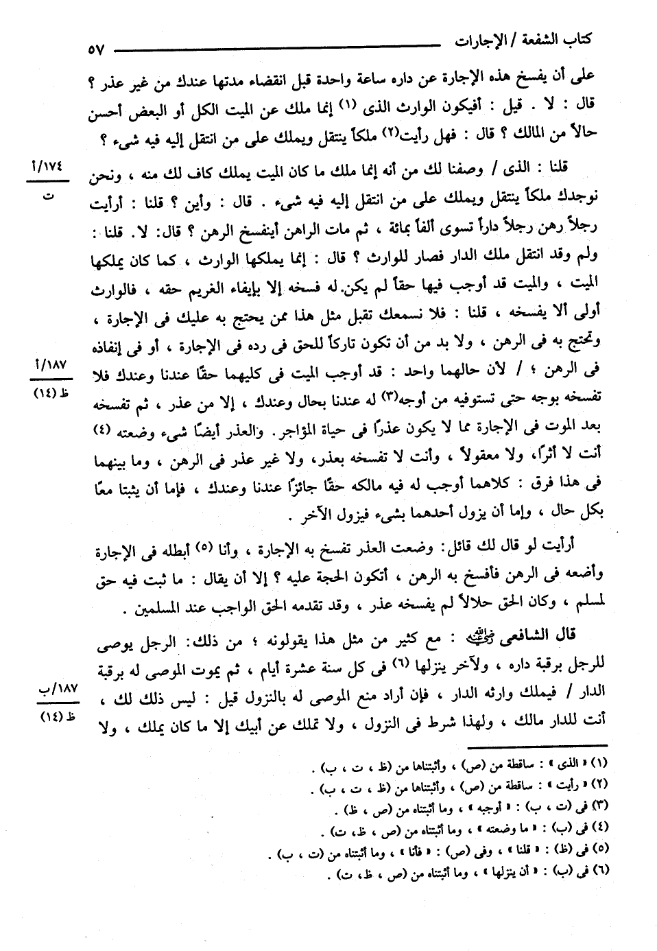 أَنْ يَفْسَخَ هَذِهِ الْإِجَارَةَ عَنْ دَارِهِ سَاعَةً وَاحِدَةً قَبْلَ انْقِضَاءِ مُدَّتِهَا عِنْدَك مِنْ غَيْرِ عُذْرٍ ؟ قَالَ : لاَ , قِيلَ : أَفَيَكُونُ الْوَارِثُ الَّذِي إنَّمَا مَلَكَ عَنْ الْمَيِّتِ الْكُلَّ , أَوْ الْبَعْضَ أَحْسَنَ حَالاً مِنْ الْمَالِكِ ؟ . قَالَ : فَهَلْ رَأَيْت مِلْكًا يَنْتَقِلُ وَيُمْلَكُ عَلَى مَنْ انْتَقِلْ إلَيْهِ فِيهِ شَيْءٌ ؟ قُلْنَا الَّذِي وَصَفْنَا لَك مِنْ أَنَّهُ إنَّمَا مَلَكَ مَا كَانَ الْمَيِّتُ يَمْلِكُ كَافٍ لَك مِنْهُ وَنَحْنُ نُوجِدُك مِلْكًا يَنْتَقِلُ وَيُمْلَكُ عَلَى مَنْ انْتَقَلَ إلَيْهِ فِيهِ شَيْءٌ قَالَ : وَأَيْنَ ؟ قُلْنَا : أَرَأَيْت رَجُلاً رَهَنَ رَجُلاً دَارًا تَسْوَى أَلْفًا بِمِائَةٍ ثُمَّ مَاتَ الرَّاهِنُ أَيَنْفَسِخُ الرَّهْنُ ؟ قَالَ : لاَ . قُلْنَا وَلِمَ , وَقَدْ انْتَقَلَ مِلْكُ الدَّارِ فَصَارَ لِلْوَارِثِ ؟ قَالَ : إنَّمَا يَمْلِكُهَا الْوَارِثُ كَمَا كَانَ يَمْلِكُهَا الْمَيِّتُ وَالْمَيِّتُ قَدْ أَوْجَبَ فِيهَا حَقًّا لَمْ يَكُنْ لَهُ فَسْخُهُ إلَّا بِإِيفَاءِ الْغَرِيمِ حَقَّهُ فَالْوَارِثُ أَوْلَى أَنْ لاَ يَفْسَخَهُ , قُلْنَا فَلاَ نَسْمَعُك تَقْبَلُ مِثْلَ هَذَا مِمَّنْ يَحْتَجُّ بِهِ عَلَيْك فِي الْإِجَارَةِ وَتَحْتَجُّ بِهِ فِي الرَّهْنِ , وَلاَ بُدَّ مِنْ أَنْ تَكُونَ تَارِكًا لِلْحَقِّ فِي رَدِّهِ فِي الْإِجَارَةِ , أَوْ فِي إنْفَاذِهِ فِي الرَّهْنِ ; لِأَنَّ حَالَهُمَا وَاحِدٌ قَدْ أَوْجَبَ الْمَيِّتُ فِي كِلَيْهِمَا حَقًّا عِنْدَنَا , وَعِنْدَك فَلاَ نَفْسَخُهُ بِوَجْهٍ حَتَّى يَسْتَوْفِيَهُ مَنْ أَوْجَبَهُ لَهُ عِنْدَنَا بِحَالٍ , وَعِنْدَك إلَّا مِنْ عُذْرٍ ثُمَّ تَفْسَخُهُ بَعْدَ الْمَوْتِ فِي الْإِجَارَةِ مِمَّا لاَ يَكُونُ عُذْرًا فِي حَيَاةِ الْمُؤَاجِرِ وَالْعُذْرُ أَيْضًا شَيْءٌ مَا وَضَعْته أَنْتَ لاَ أَثَرًا , وَلاَ مَعْقُولاً وَأَنْتَ لاَ تَفْسَخُهُ بِعُذْرٍ , وَلاَ غَيْرِ عُذْرٍ فِي الرَّهْنِ وَمَا بَيْنَهُمَا فِي هَذَا فَرْقٌ كِلاَهُمَا أَوْجَبُ لَهُ فِيهِ مَالِكَهُ حَقًّا جَائِزًا عِنْدَنَا , وَعِنْدَك فَإِمَّا أَنْ يَثْبُتَا مَعًا بِكُلِّ حَالٍ وَإِمَّا أَنْ يَزُولَ أَحَدُهُمَا بِشَيْءٍ فَيَزُولُ الْآخَرُ , أَرَأَيْت لَوْ قَالَ لَك قَائِلٌ : وَضَعْت الْعُذْرَ تَفْسَخُ بِهِ الْإِجَارَةَ وَأَنَا أُبْطِلُهُ فِي الْإِجَارَةِ وَأَضَعُهُ فِي الرَّهْنِ فَأَفْسَخُ بِهِ الرَّهْنَ أَتَكُونُ الْحُجَّةُ عَلَيْهِ ؟ إلَّا أَنْ يُقَالَ : مَا ثَبَتَ فِيهِ حَقٌّ لِمُسْلِمٍ وَكَانَ الْحَقُّ حَلاَلاً لَمْ يَفْسَخْهُ عُذْرٌ , وَقَدْ تَقَدَّمَهُ الْحَقُّ الْوَاجِبُ عِنْدَ الْمُسْلِمِينَ .