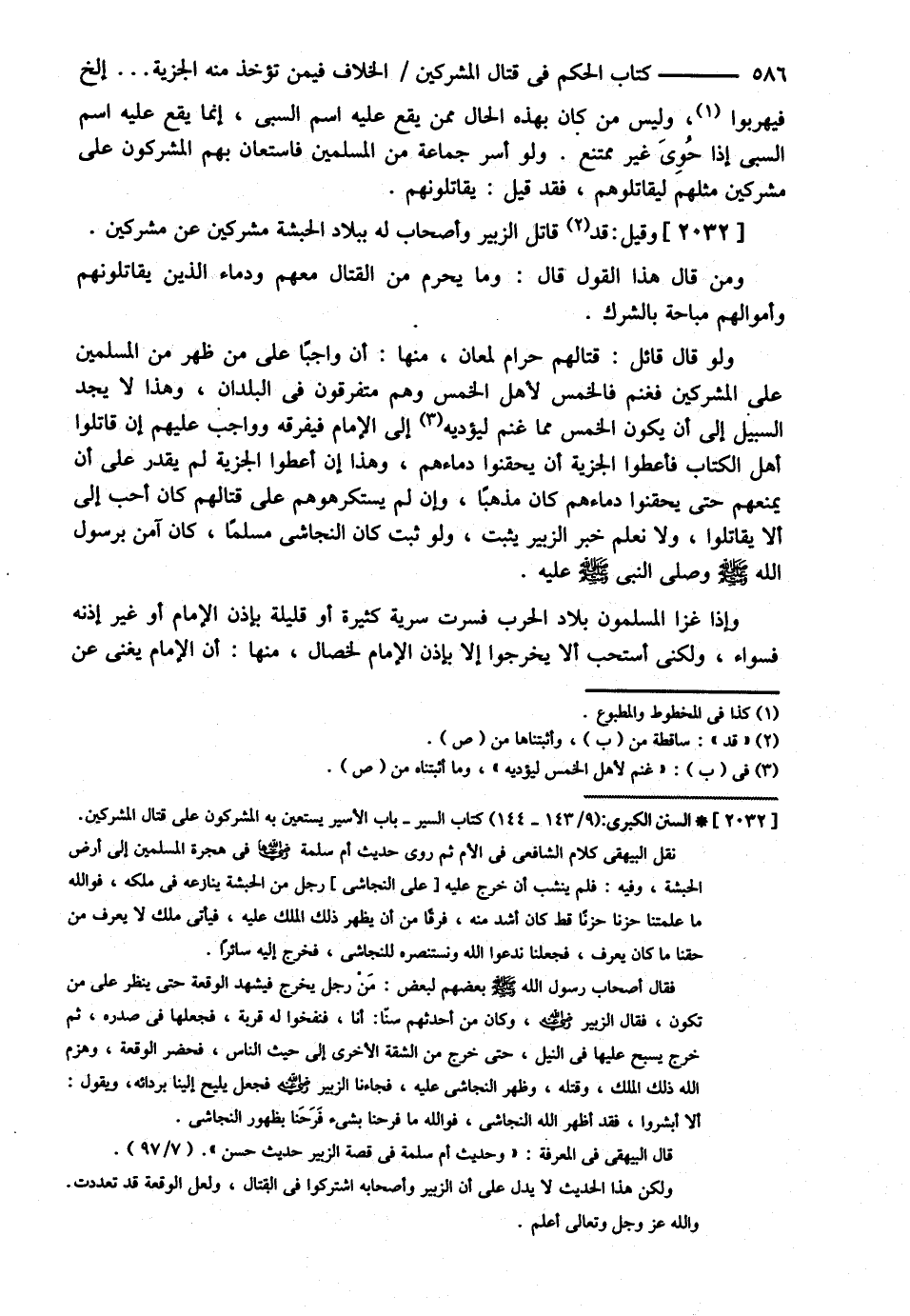 وَلَوْ أُسِرَ جَمَاعَةٌ مِنْ الْمُسْلِمِينَ فَاسْتَعَانَ بِهِمْ الْمُشْرِكُونَ عَلَى مُشْرِكِينَ مِثْلِهِمْ لِيُقَاتِلُوهُمْ فَقَدْ قِيلَ يُقَاتِلُونَهُمْ وَقِيلَ قَاتَلَ الزُّبَيْرُ وَأَصْحَابٌ لَهُ بِبِلاَدِ الْحَبَشَةِ مُشْرِكِينَ عَنْ مُشْرِكِينَ وَمَنْ قَالَ هَذَا الْقَوْلَ قَالَ وَمَا يَحْرُمُ مِنْ الْقِتَالِ مَعَهُمْ وَدِمَاءُ الَّذِينَ يُقَاتِلُونَهُمْ وَأَمْوَالُهُمْ مُبَاحَةٌ بِالشِّرْكِ وَلَوْ قَالَ قَائِلٌ قِتَالُهُمْ حَرَامٌ لِمَعَانٍ مِنْهَا أَنَّ وَاجِبًا عَلَى مَنْ ظَهَرَ مِنْ الْمُسْلِمِينَ عَلَى الْمُشْرِكِينَ فَغَنِمَ فَالْخُمُسُ لِأَهْلِ الْخُمُسِ وَهُمْ مُتَفَرِّقُونَ فِي الْبُلْدَانِ وَهَذَا لاَ يَجِدُ السَّبِيلَ إلَى أَنْ يَكُونَ الْخُمُسُ مِمَّا غَنِمَ لِأَهْلِ الْخُمُسِ لِيُؤَدِّيَهُ إلَى الْإِمَامِ فَيُفَرِّقَهُ وَوَاجِبٌ عَلَيْهِمْ إنْ قَاتَلُوا أَهْلَ الْكِتَابِ فَأَعْطَوْا الْجِزْيَةَ أَنْ يَحْقِنُوا دِمَاءَهُمْ وَهَذَا إنْ أَعْطَوْا الْجِزْيَةَ لَمْ يَقْدِرْ عَلَى أَنْ يَمْنَعَهُمْ حَتَّى يَحْقِنُوا دِمَاءَهُمْ كَانَ مَذْهَبًا وَإِنْ لَمْ يَسْتَكْرِهُوهُمْ عَلَى قِتَالِهِمْ كَانَ أَحَبُّ إلَيَّ أَنْ لاَ يُقَاتِلُوا وَلاَ نَعْلَمُ خَبَرَ الزُّبَيْرِ يَثْبُت وَلَوْ ثَبَتَ كَانَ النَّجَاشِيُّ مُسْلِمًا كَانَ آمَنَ بِرَسُولِ اللَّهِ - صلى الله عليه وسلم - وَصَلَّى النَّبِيُّ - صلى الله عليه وسلم - .